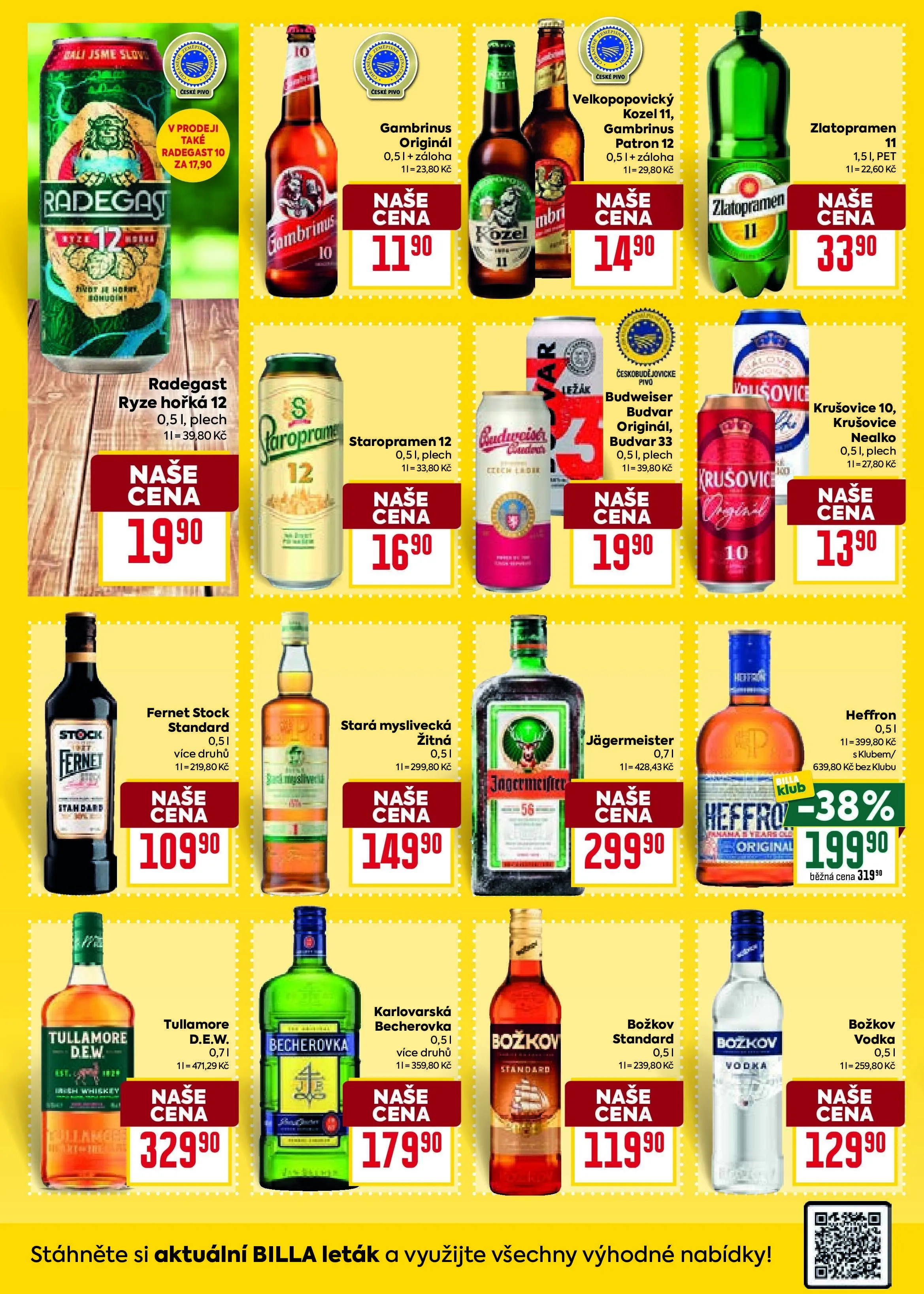 V letáku obchodu BILLA najdete širokou nabídku oblíbených nápojů. Mezi nimi se objevují piva jako Radegast Hořká 12 za 29,90 Kč, Gambrinus Originál a Kozel II za 14,90 Kč. Nezapomeňte na Budweiser Budvar za 33 Kč, Krušovice 10 a 11 za 19,90 Kč, nebo Staropramen 12 za 16,90 Kč.