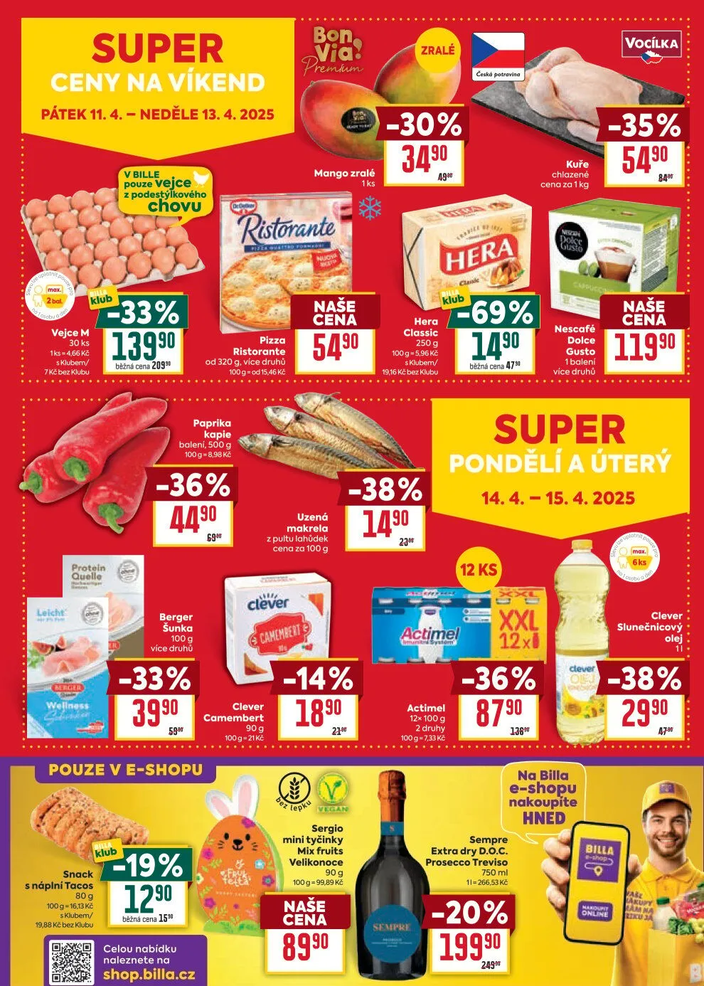 V letáku obchodu BILLA na období od pátku 11.4. do neděle 13.4. 2025 najdete širokou nabídku produktů za skvělé ceny.