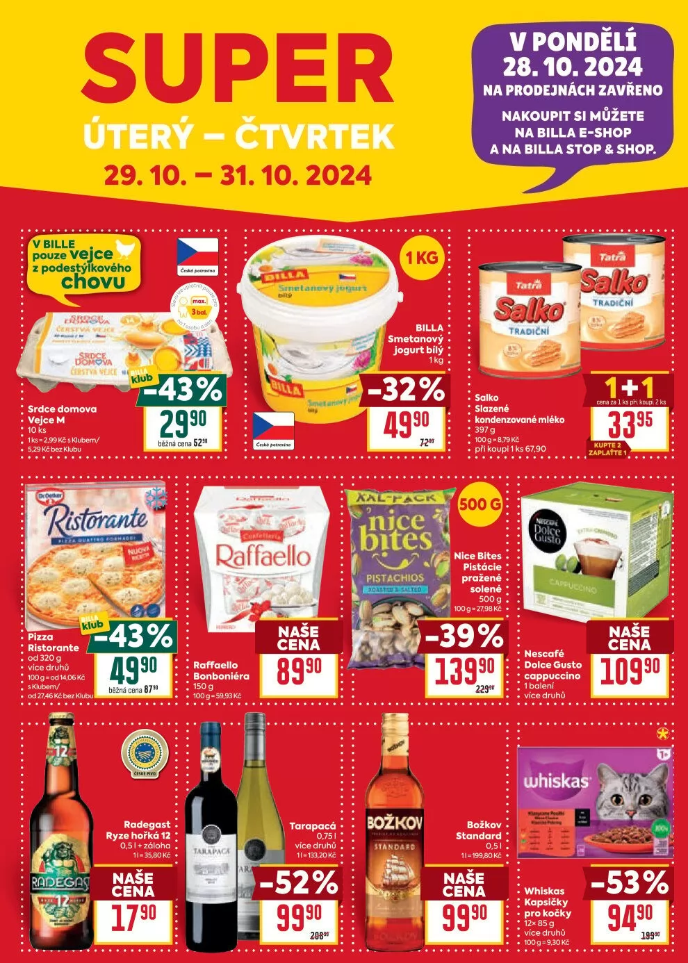 V letáku obchodu BILLA na období od 29.10. do 31.10.2024 najdete skvělé nabídky!