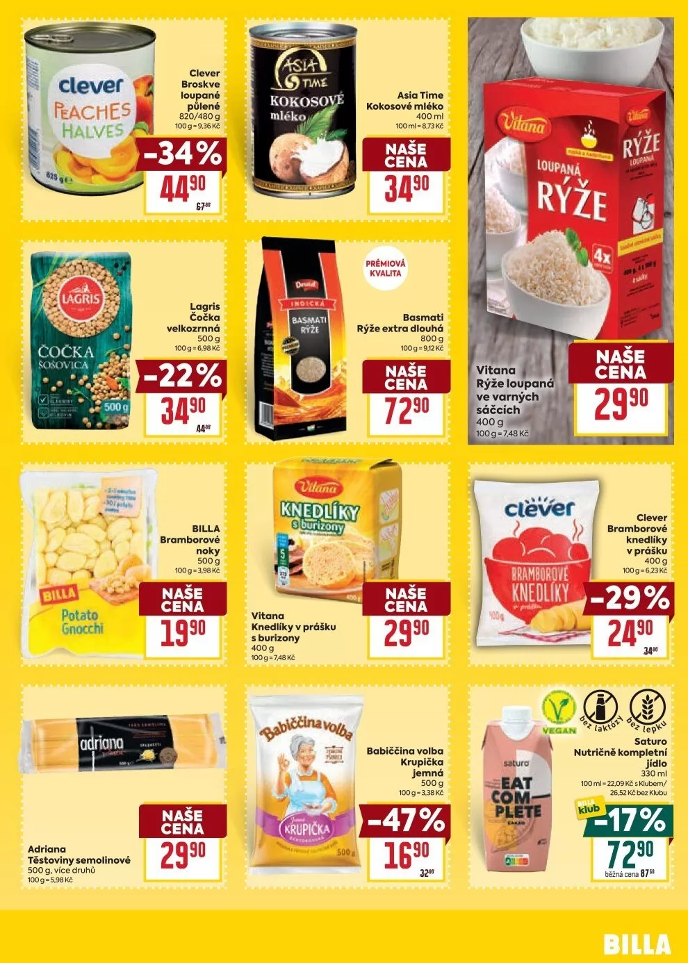 V letáku obchodu BILLA najdete širokou nabídku kvalitních produktů za výhodné ceny. Mezi nimi se objevují například: