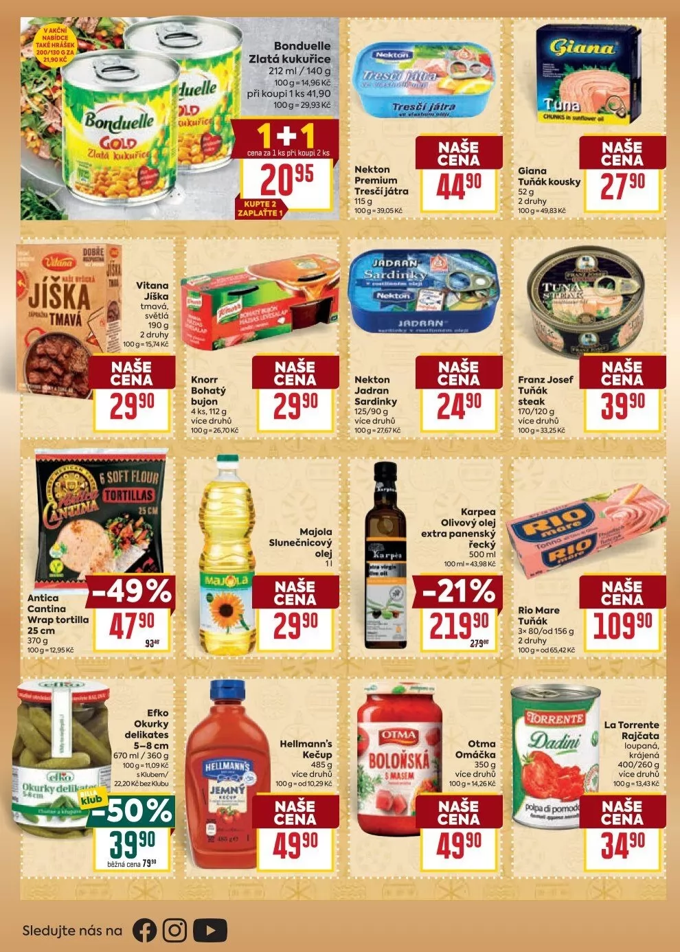 V letáku najdete i další produkty jako rajčata loupaná La Torrente za 34,90 Kč a boloňskou omáčku za 49,90 Kč. Využijte skvělé akce a nakupujte výhodně!
