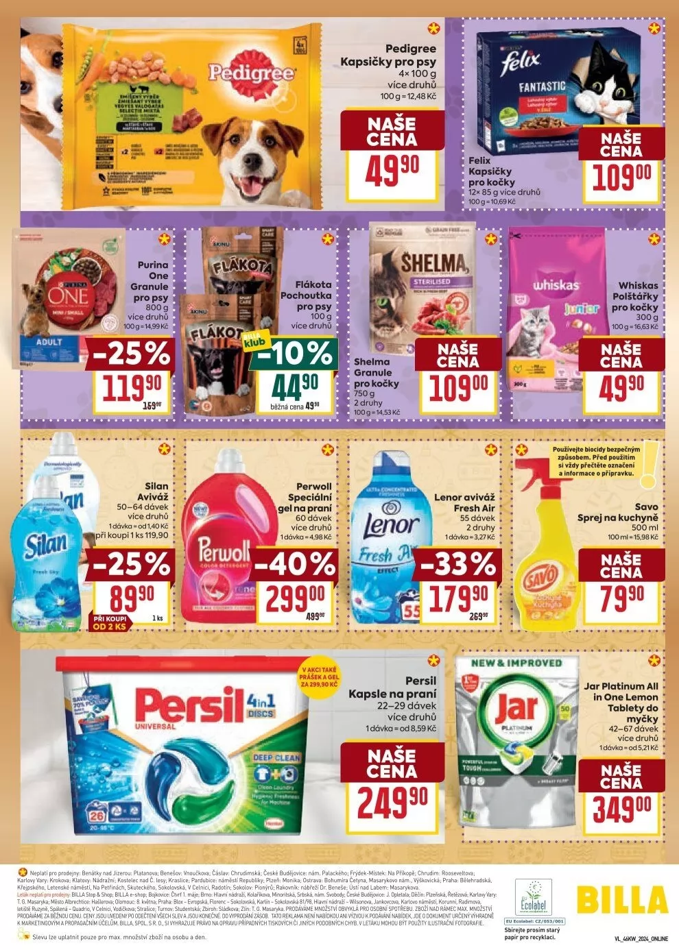 V letáku obchodu BILLA najdete širokou nabídku produktů pro vaše domácí mazlíčky.