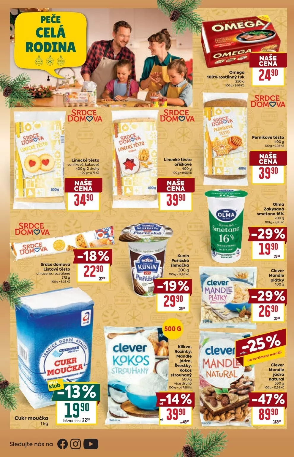 V letáku obchodu BILLA najdete širokou nabídku produktů, které potěší celou rodinu. Mezi nimi se nachází linecké těsto v vanilkové a kakaové variantě (400 g) za cenu 34,90 Kč. Dále nabízíme 100% rostlinný tuk Omega (250 g) za 24,90 Kč.