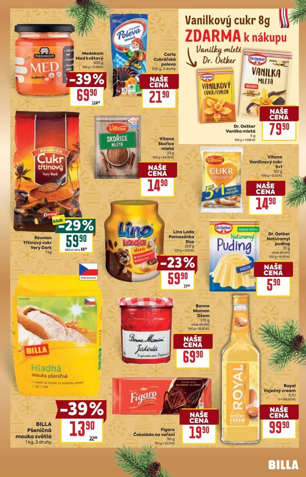 V letáku obchodu BILLA najdete širokou nabídku produktů, které potěší každého milovníka pečení a vaření. Mezi nabízenými položkami je vanilkový cukr 8g, třtinový cukr, skořice mletá od Vitany a cukrářská poleva ve třech druzích. Nezapomeňte také na pomazánku Lino Lada a vanilkový puding od Dr. Oetkera.