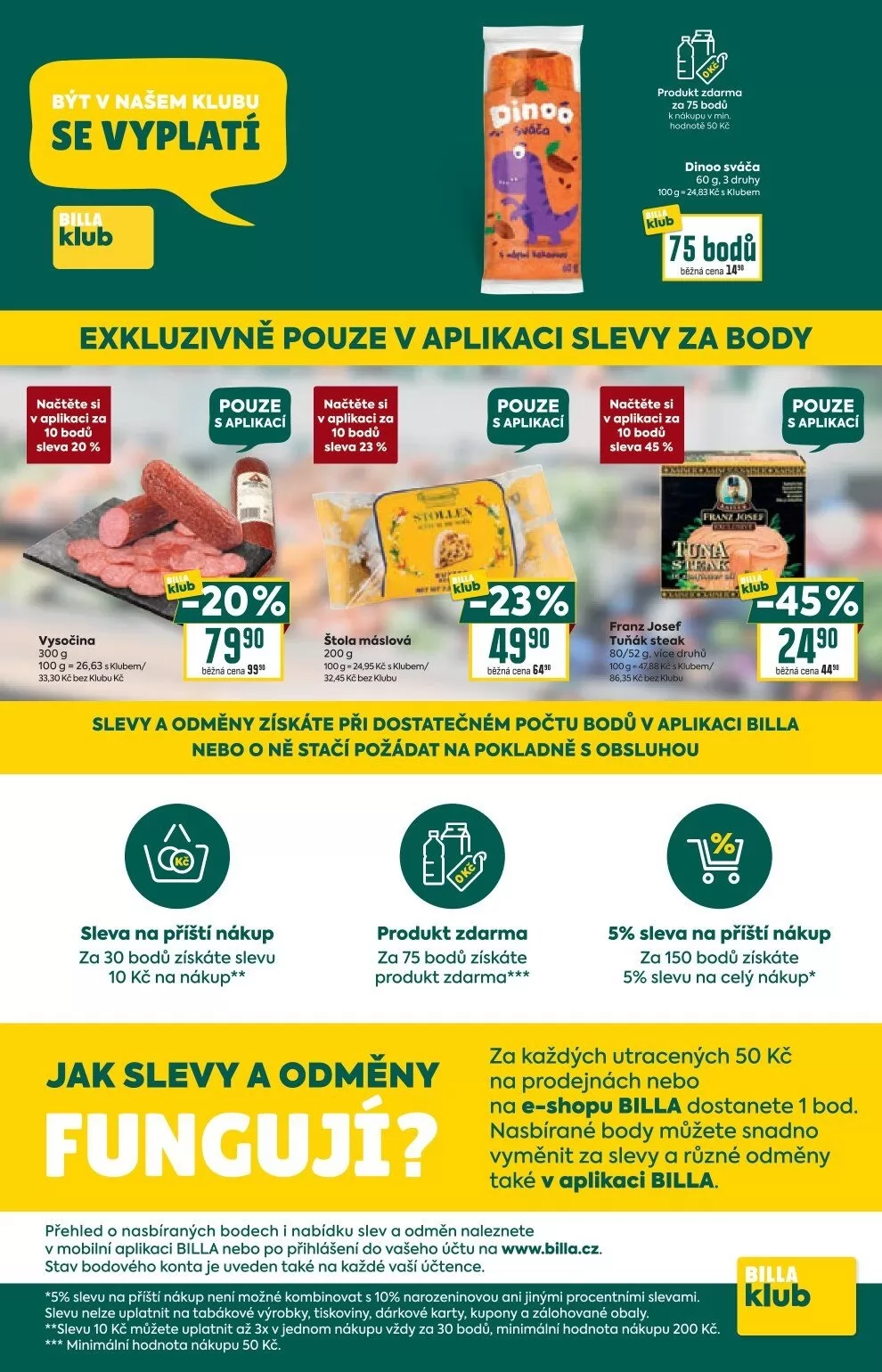 Nezapomeňte, že za 30 bodů získáte slevu 10 Kč na příští nákup a za 150 bodů dokonce 5 % slevu na celý nákup. Přijďte si pro své výhody a užijte si nákupy s BILLA!