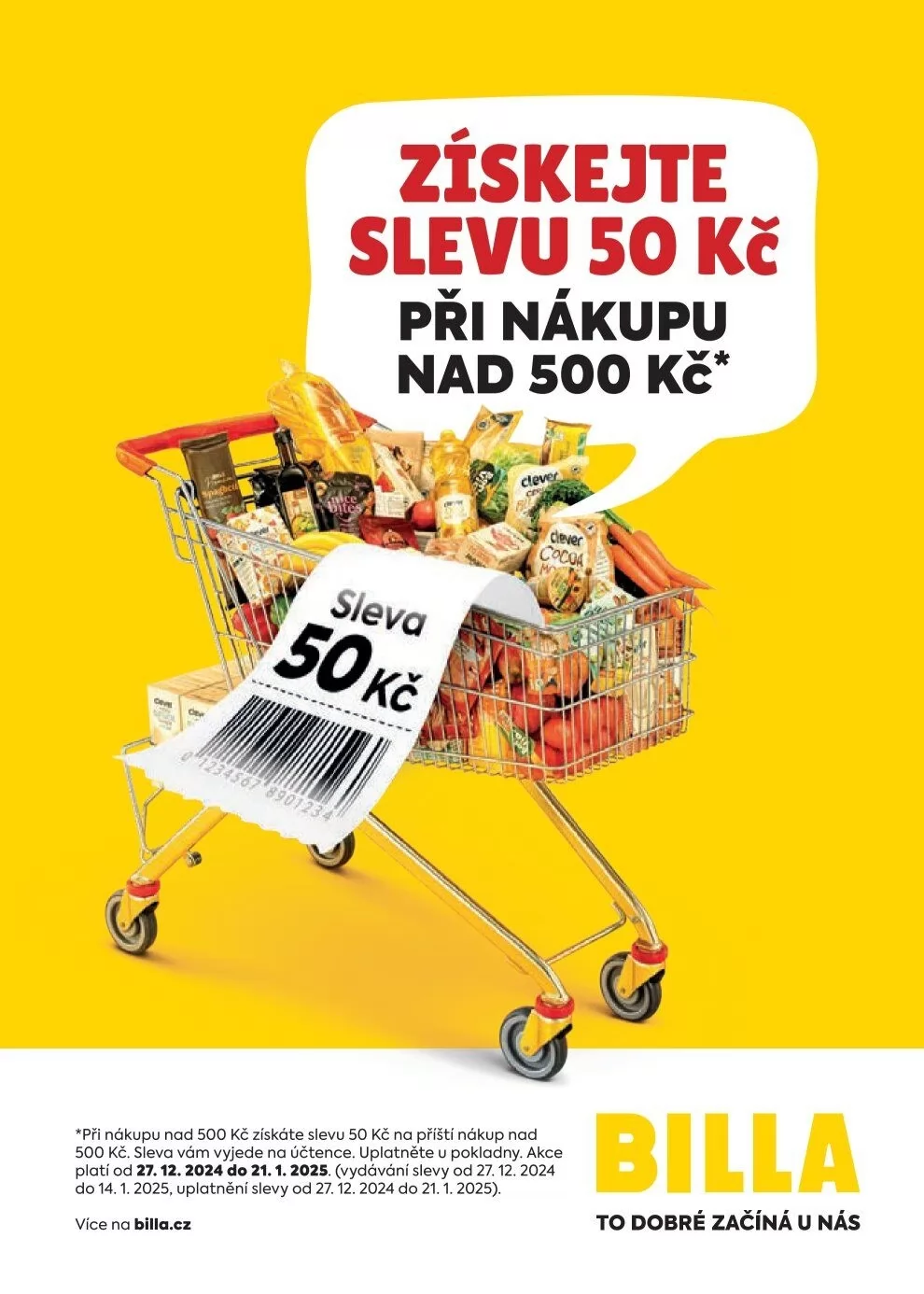 Při nákupu nad 500 Kč získáte slevu 50 Kč na příští nákup nad 500 Kč. Sleva vám vyjede na účtence, kterou uplatníte u pokladny.
