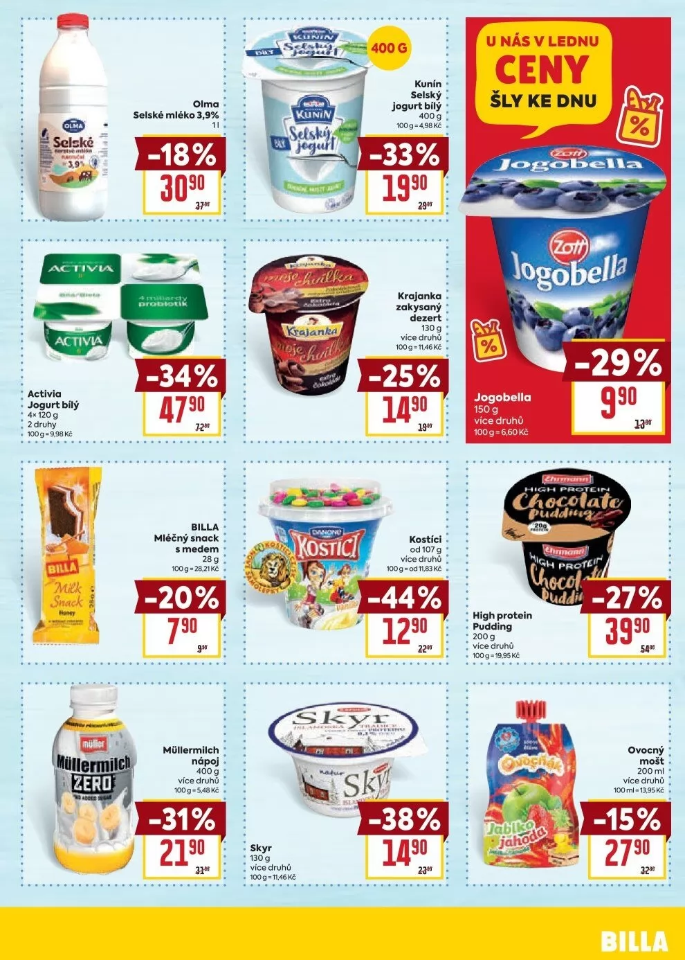 V letáku obchodu BILLA najdete širokou nabídku mléčných produktů, které potěší každého milovníka zdravého stravování. Mezi nimi se objevují jogurty Activia v bílém provedení, balení 4x120g, a také skvělé mléčné snacky Olma s medem. Nezapomeňte vyzkoušet Müller Milch nápoj v různých variantách, nebo skyr, který je ideální pro ty, kteří hledají vysoký obsah bílkovin.