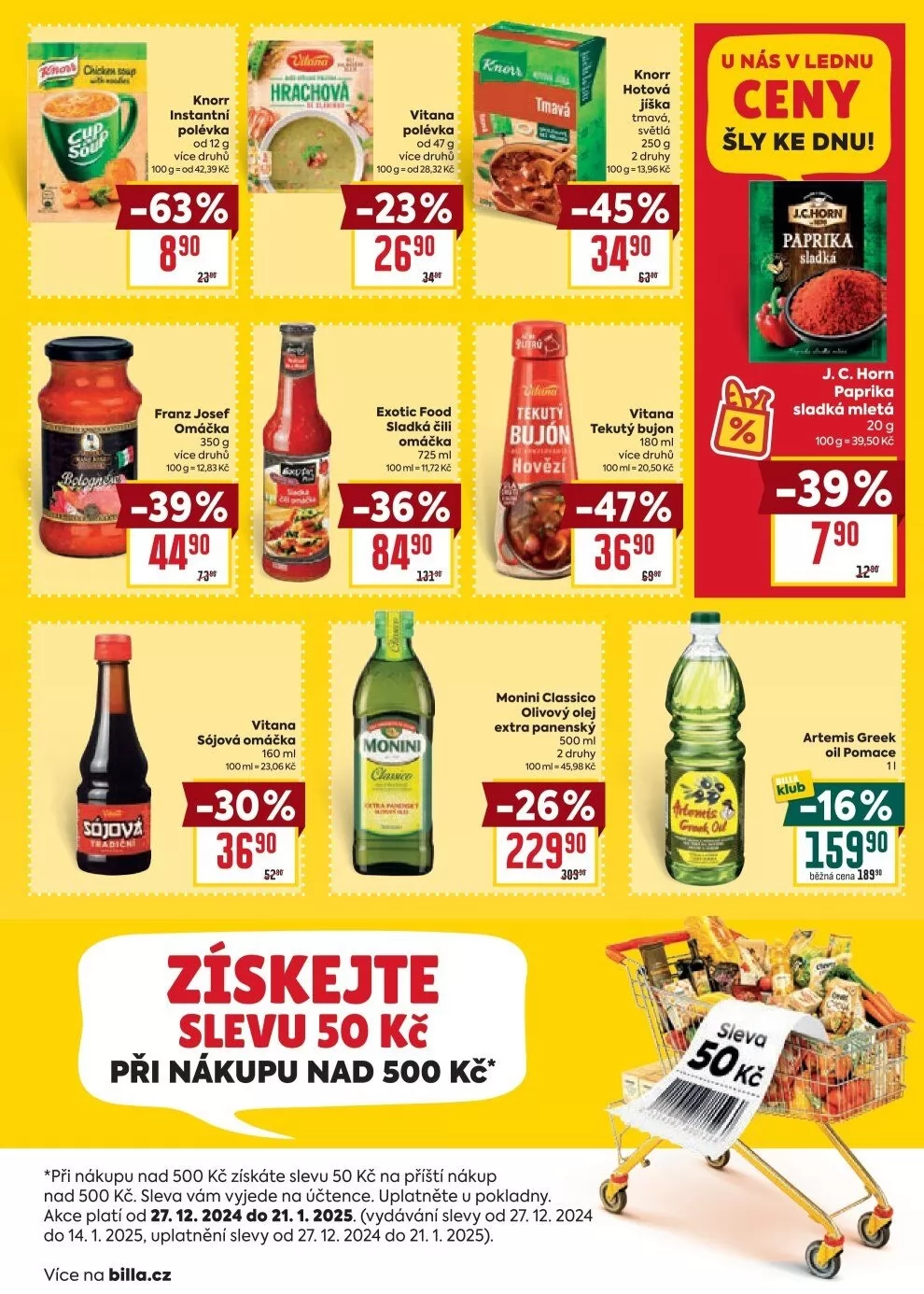 Akce platí od 27.12.2024 do 21.1.2025. Více informací na billa.cz.