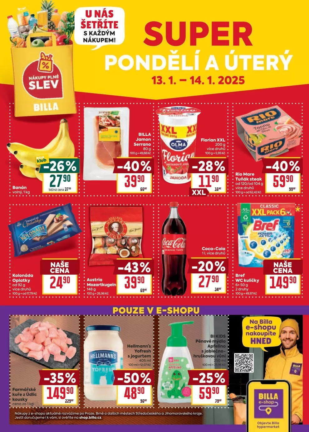 Nakupujte pohodlně z domova na našem e-shopu, který aktuálně rozvážíme po Praze, Brně a dalších městech. Ověřte si, zda doručujeme i k vám na shop.billa.cz. Objevte výhody nákupu v BILLA hypermarketu!