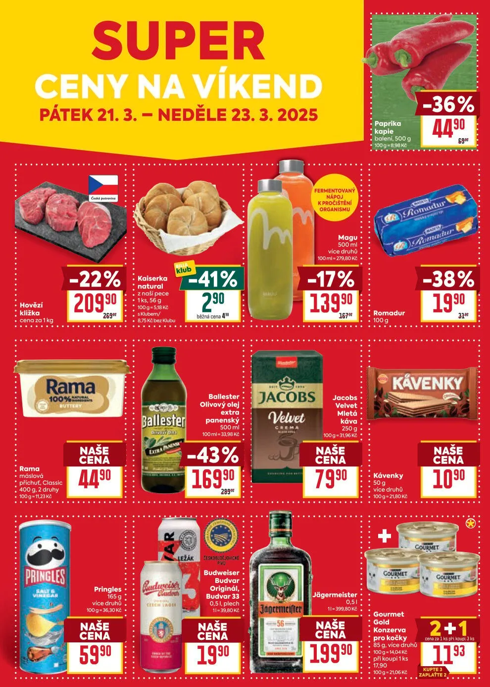 V letáku obchodu BILLA na víkend od pátku 21.3. do neděle 23.3.2025 najdete skvělé nabídky.