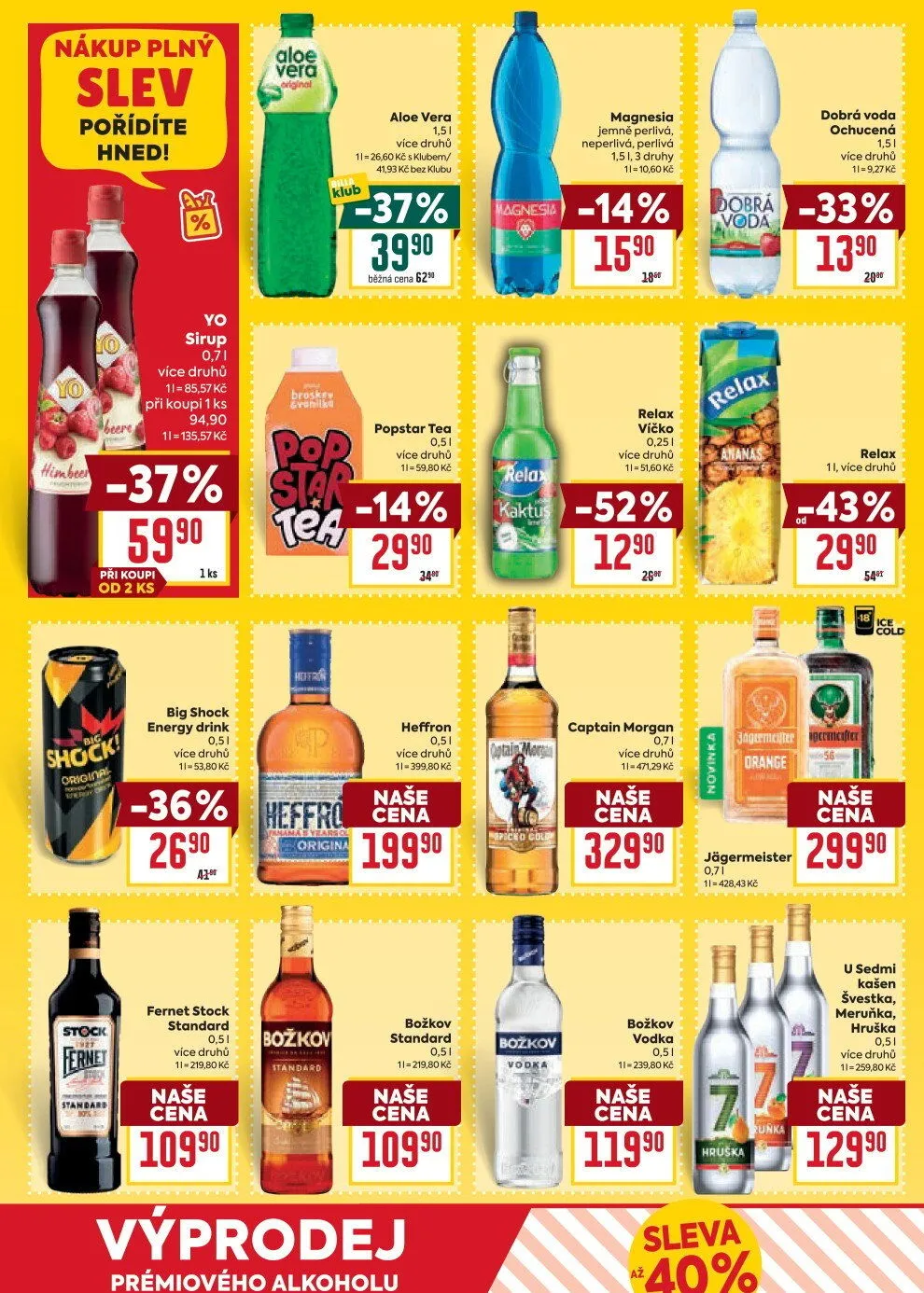 Například sirup za 94,90 Kč, nebo energii s Big Shock drinkem za 39,90 Kč.