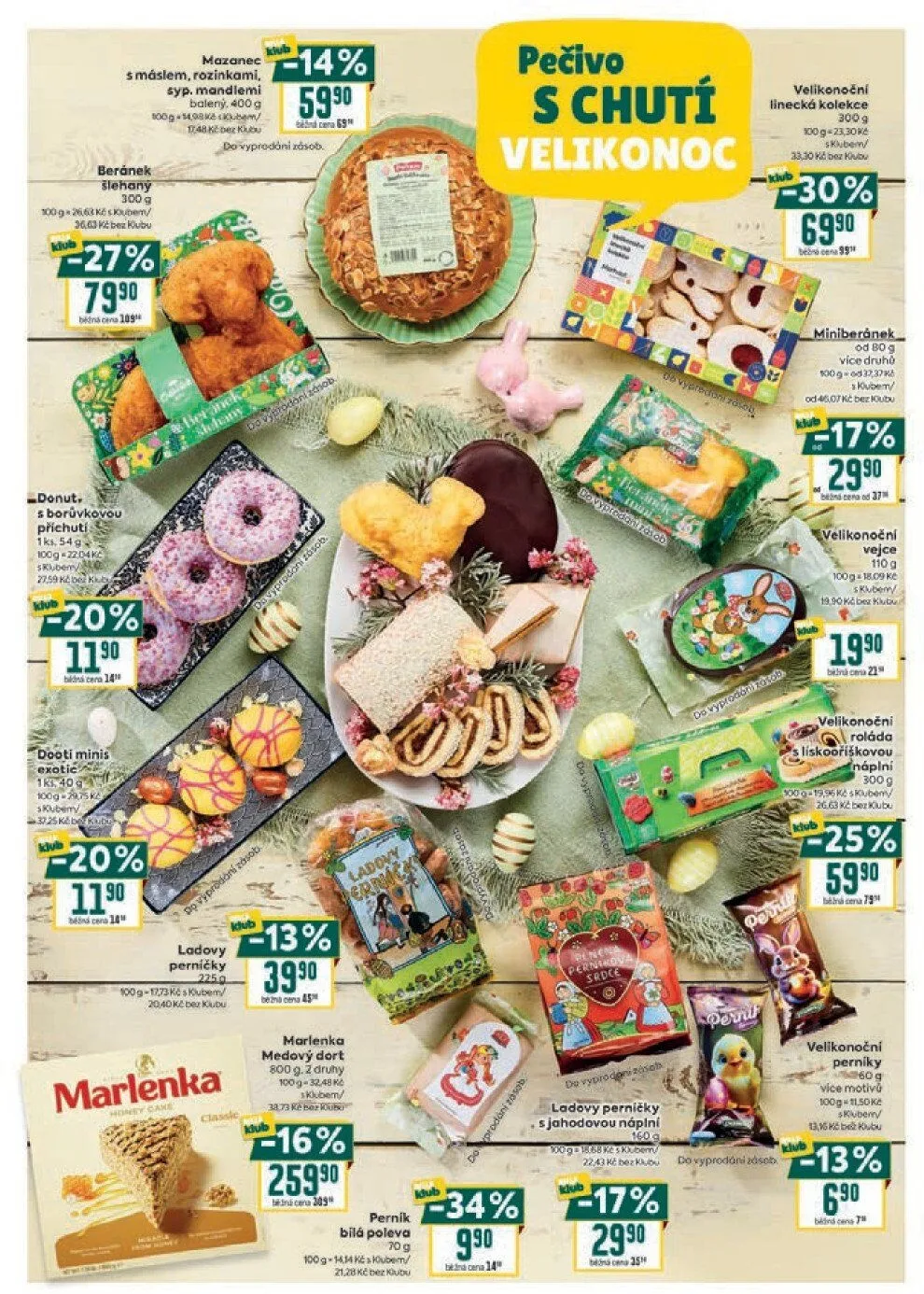 Nezapomeňte také na medový dort, který je k dostání za 25,90 Kč, a bílou pečivo s chutí jahodové náplně za 29,90 Kč. Pro velikonoční svátky si můžete vybrat z kolekce velikonočních perníků, které jsou v akci za 19,90 Kč. Všechny tyto produkty jsou skvělou volbou pro vaše mlsné jazýčky!