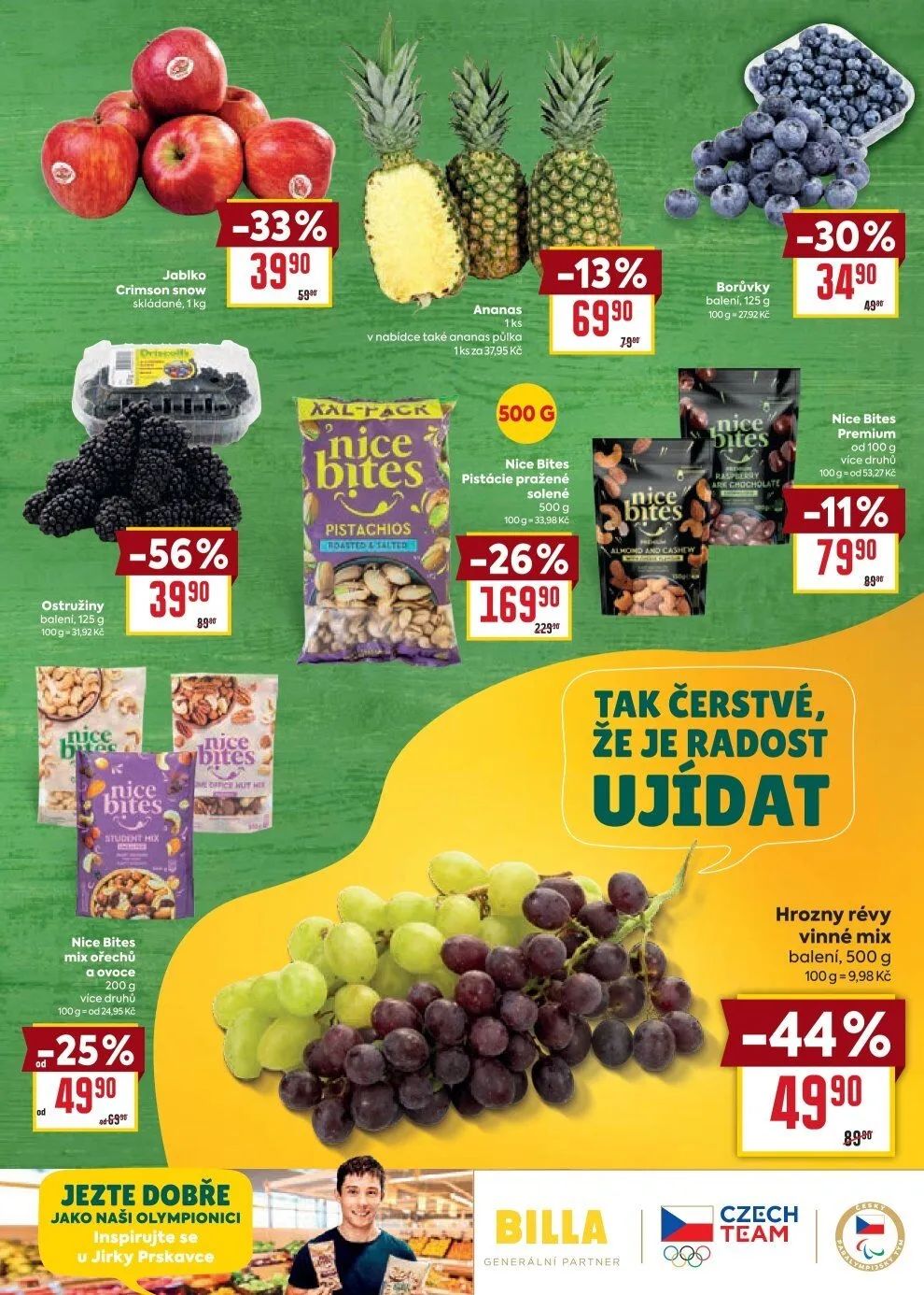 V letáku obchodu BILLA najdete skvělé akční nabídky na čerstvé ovoce a ořechy.
