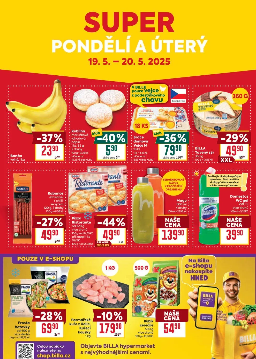 V letáku obchodu BILLA na pondělí a úterý 19. 5. - 20. 5. 2025 najdete skvělé nabídky!