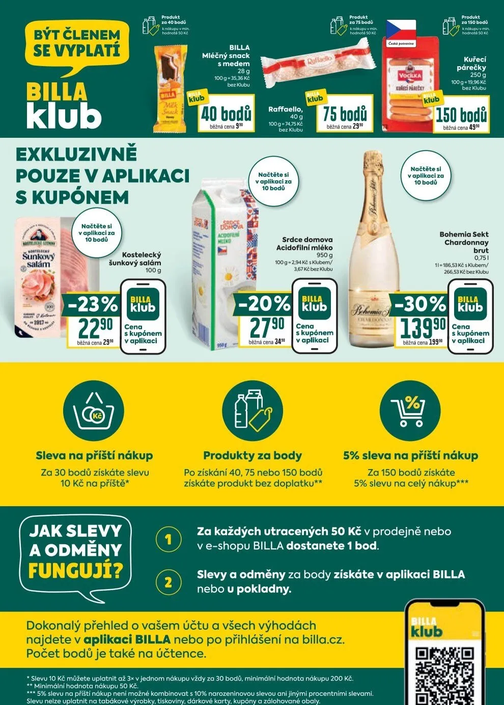 Všechny výhody a aktuální nabídky najdete snadno v aplikaci BILLA nebo na webu billa.cz.