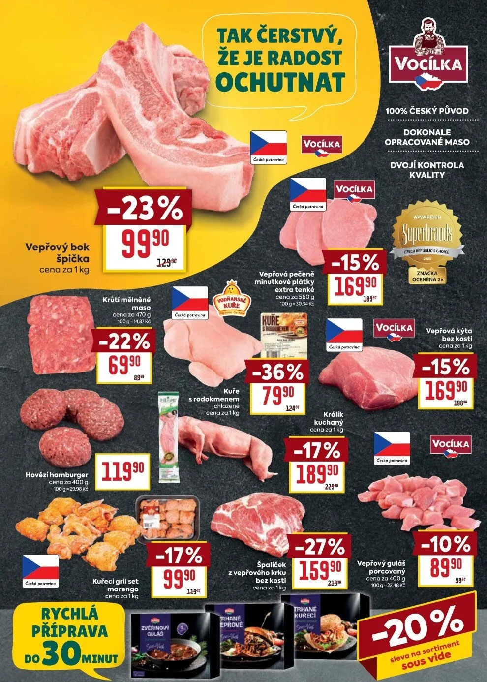 A nezapomeňte na rychlou přípravu s vepřovým gulášem porcovaným za 99,90 Kč za 400 g.
