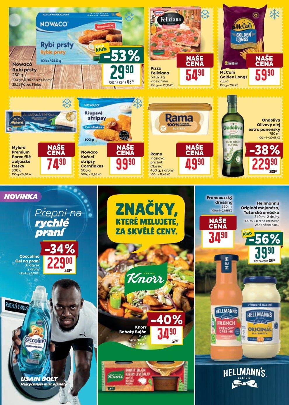 V letáku obchodu BILLA najdete širokou nabídku produktů za skvělé ceny. Mezi nimi jsou rybí prsty od značky Nowaco, které jsou nyní v akci se slevou 53%. Dále si můžete vybrat pizzu Feliciana v různých druzích, nebo křupavé kuřecí stripsy od Nowaco.