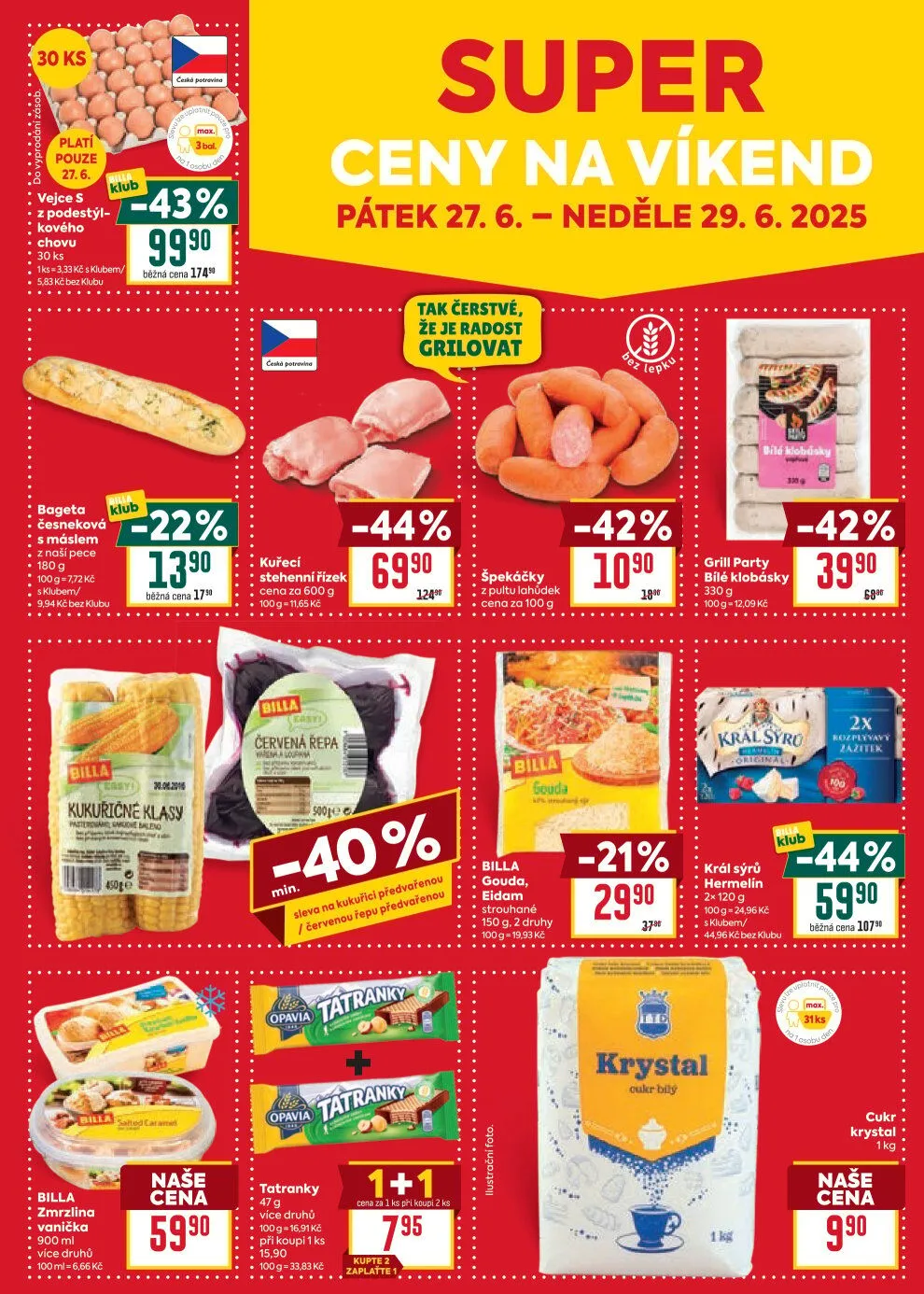 V letáku obchodu BILLA najdete skvělé nabídky na víkend od pátku 27.6. do neděle 29.6.2025.