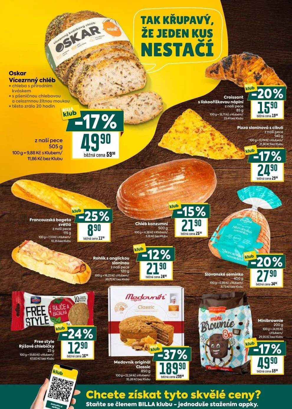 V letáku obchodu BILLA najdete širokou nabídku čerstvého pečiva a lahodných pochoutek.