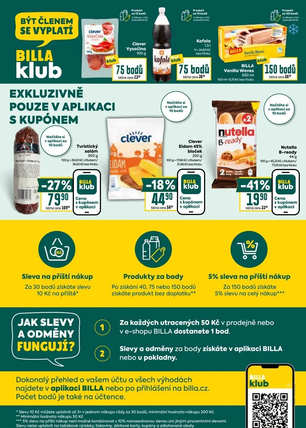 Exkluzivně v aplikaci můžete získat Nutellu nebo turistický salám se slevou. Za nasbírané body můžete získat produkty bez doplatku, a to při dosažení 40, 75 nebo 150 bodů.