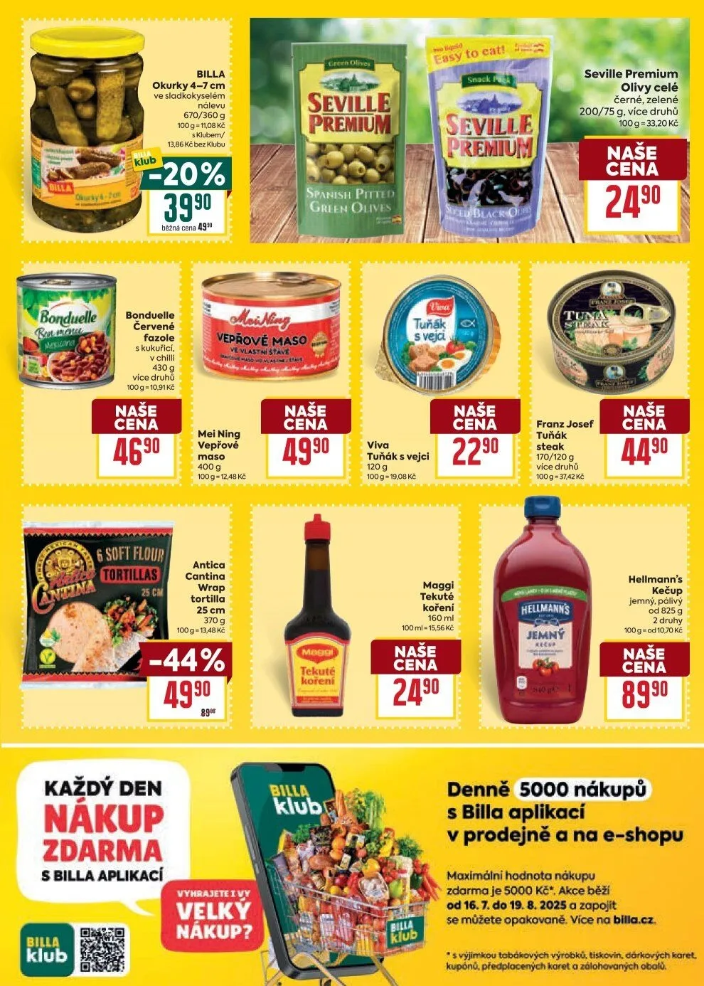 A nezapomeňte, s BILLA aplikací můžete každý den získat nákup zdarma až do výše 5000 Kč! Akce platí od 16.7. do 19.8.2025. Více informací najdete na billa.cz.