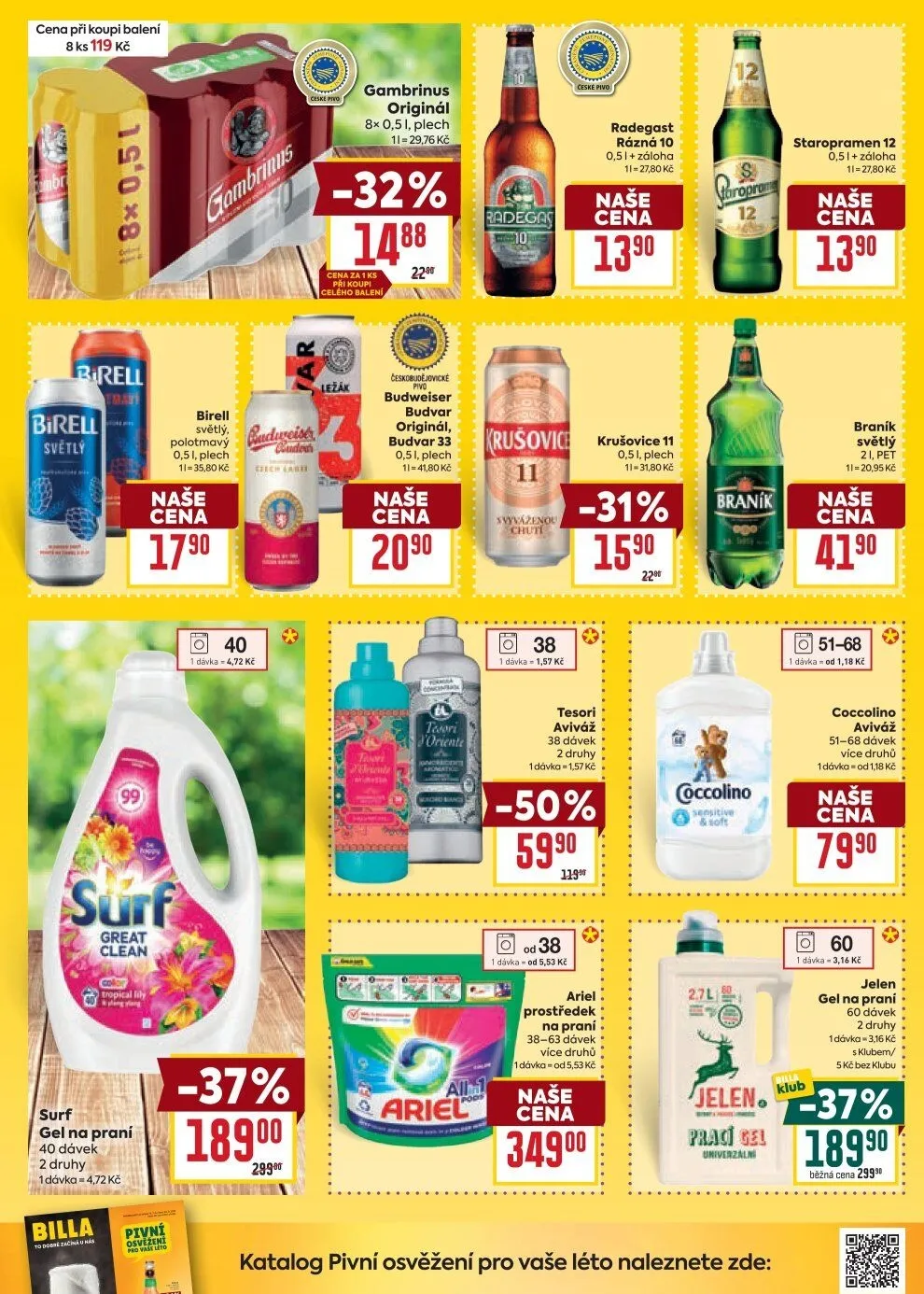 V letáku obchodu BILLA najdete širokou nabídku produktů za skvělé ceny. Například pivo Gambrinus Original 0,5 l plechovka je k dispozici za 29,76 Kč při koupi balení. Dále si můžete vybrat z piva Budweiser Budvar Original 0,5 l plechovka za 35,80 Kč.