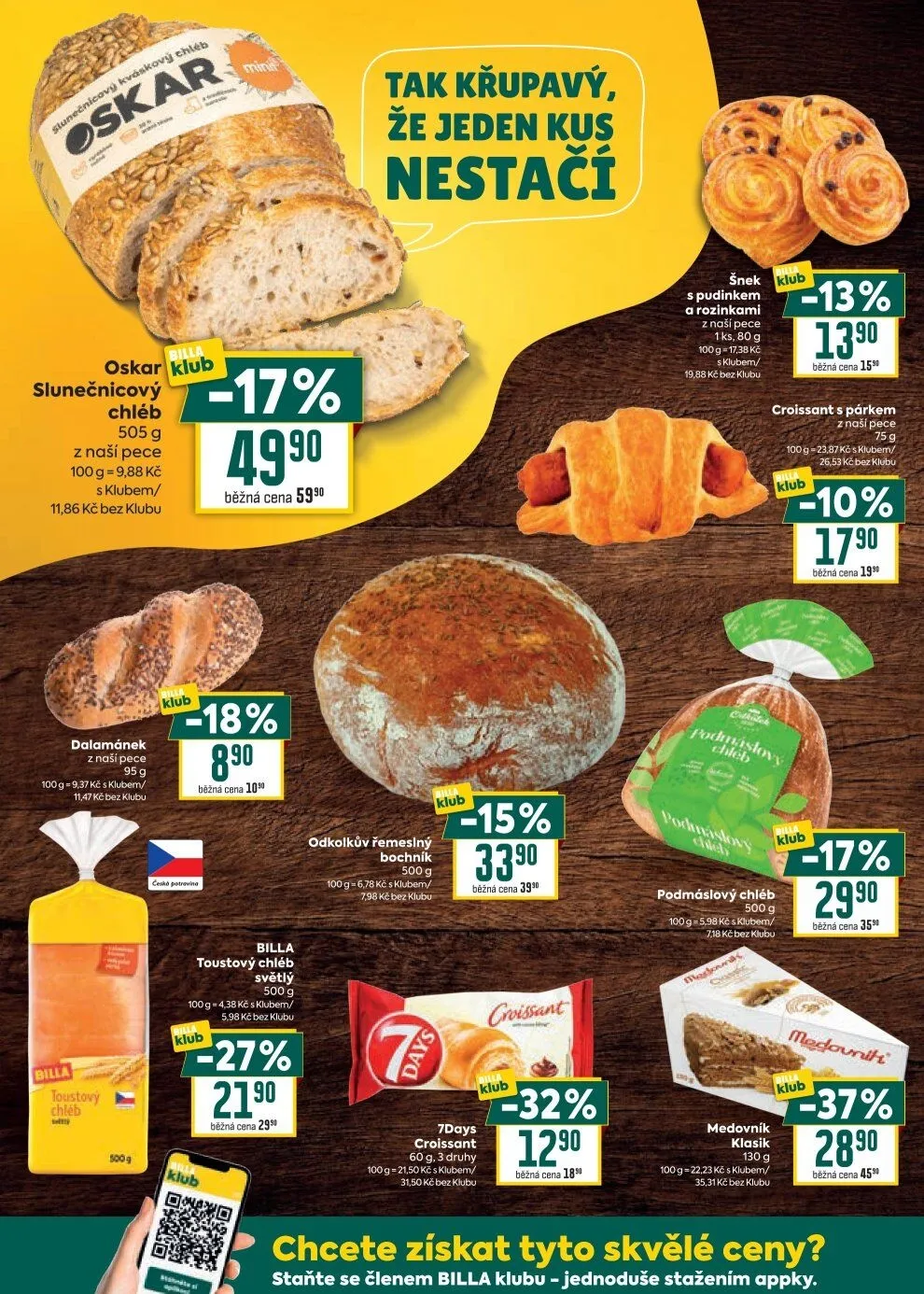 V letáku obchodu BILLA najdete širokou nabídku čerstvého pečiva, které potěší každého milovníka dobrého jídla.