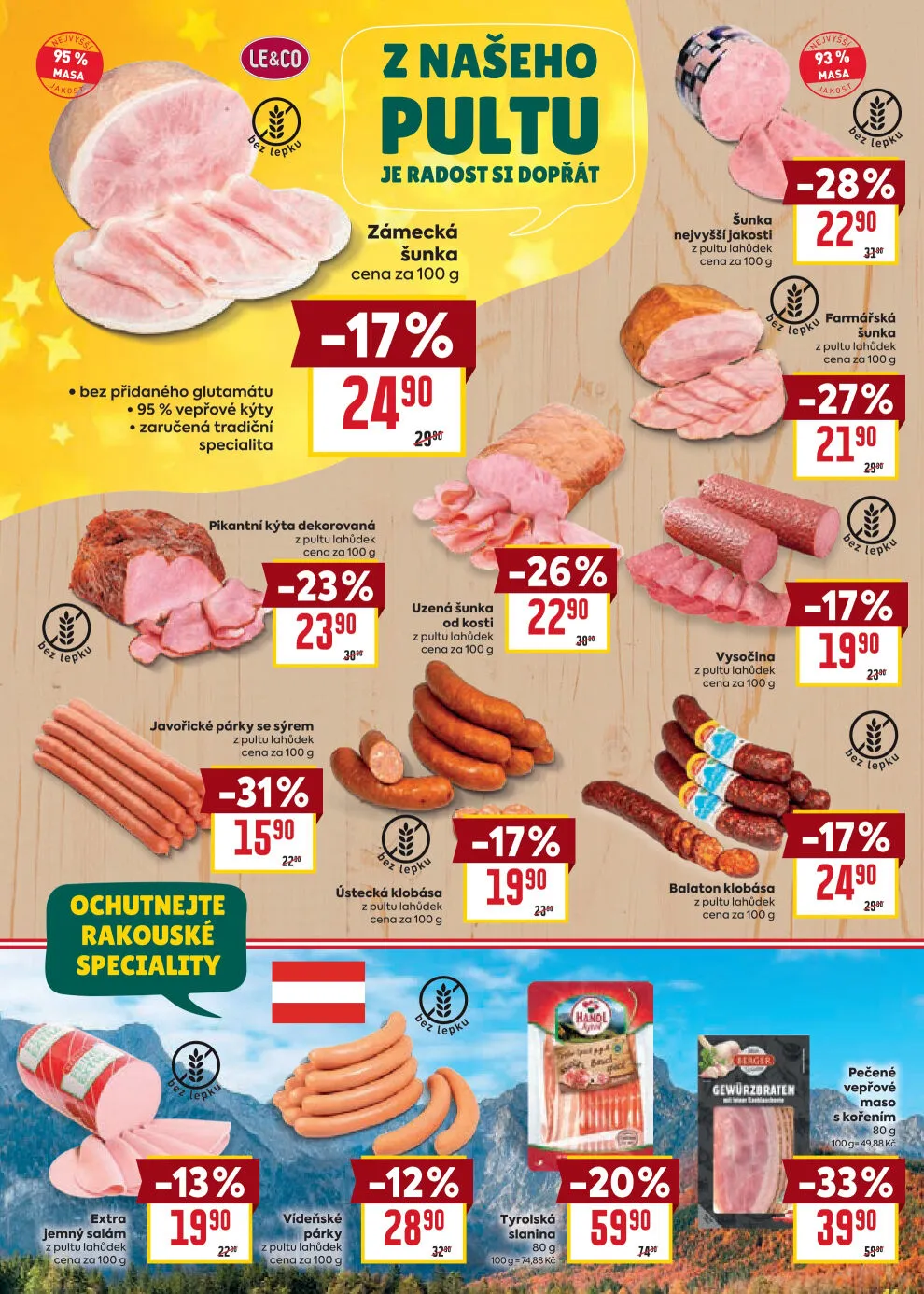 Šunka nejvyšší jakosti, cena za 100 g, 22.90