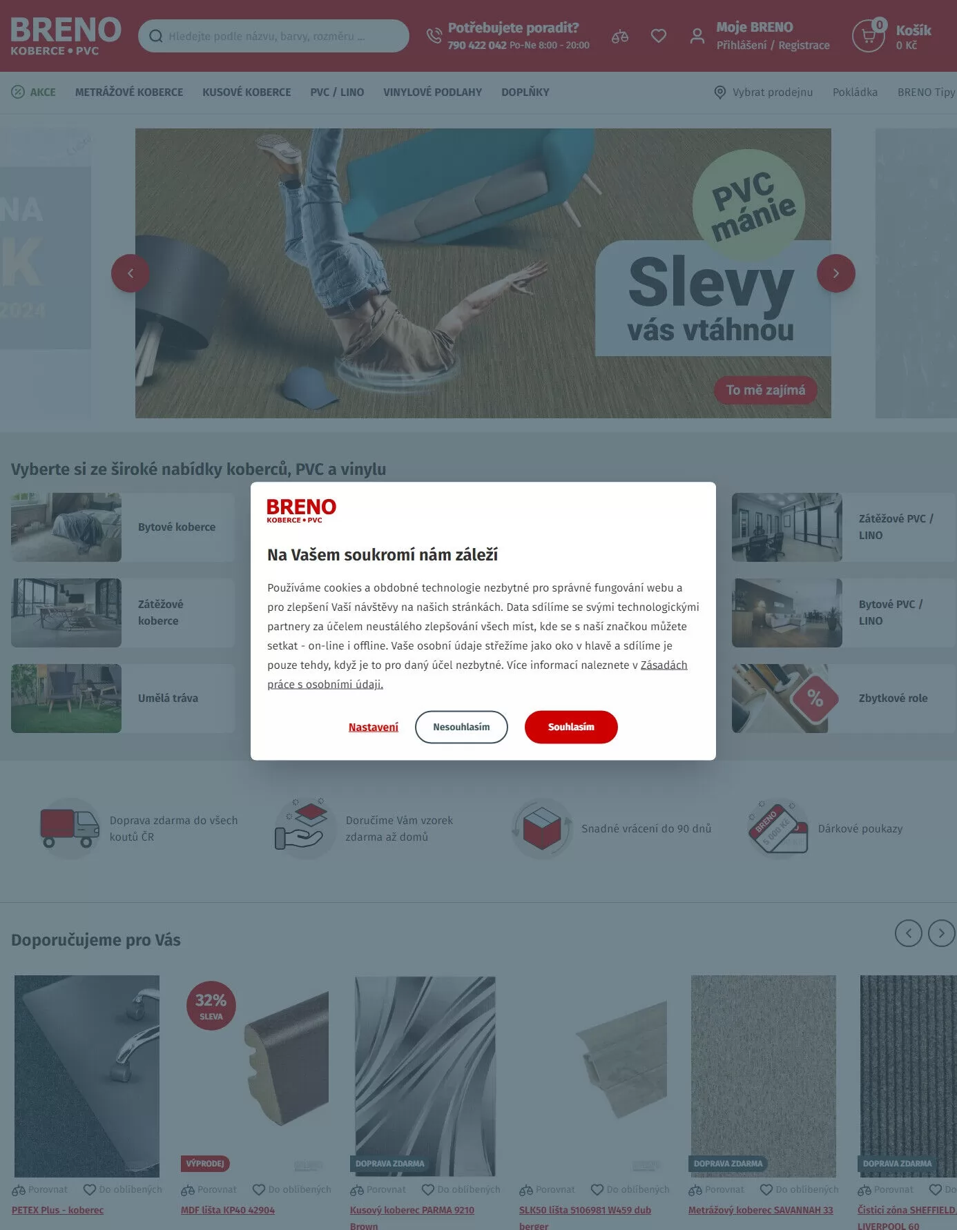 V obchodě Breno najdete širokou nabídku koberců a podlahových krytin. Nabízíme metrážové a kusové koberce, PVC podlahy, vinylové podlahy a umělou trávu. V současné době probíhá akce se slevou až 32% na vybrané produkty. Doprava je zdarma do všech koutů ČR a můžete si objednat vzorek zdarma až domů. Naše produkty zahrnují také zátěžové PVC a bytové PVC, stejně jako různé doplňky a lišty. Pokud potřebujete poradit, neváhejte nás kontaktovat na telefonním čísle 790 422 042. U nás máte možnost snadného vrácení do 90 dnů. Navštivte nás a vyberte si ten pravý koberec pro váš domov!