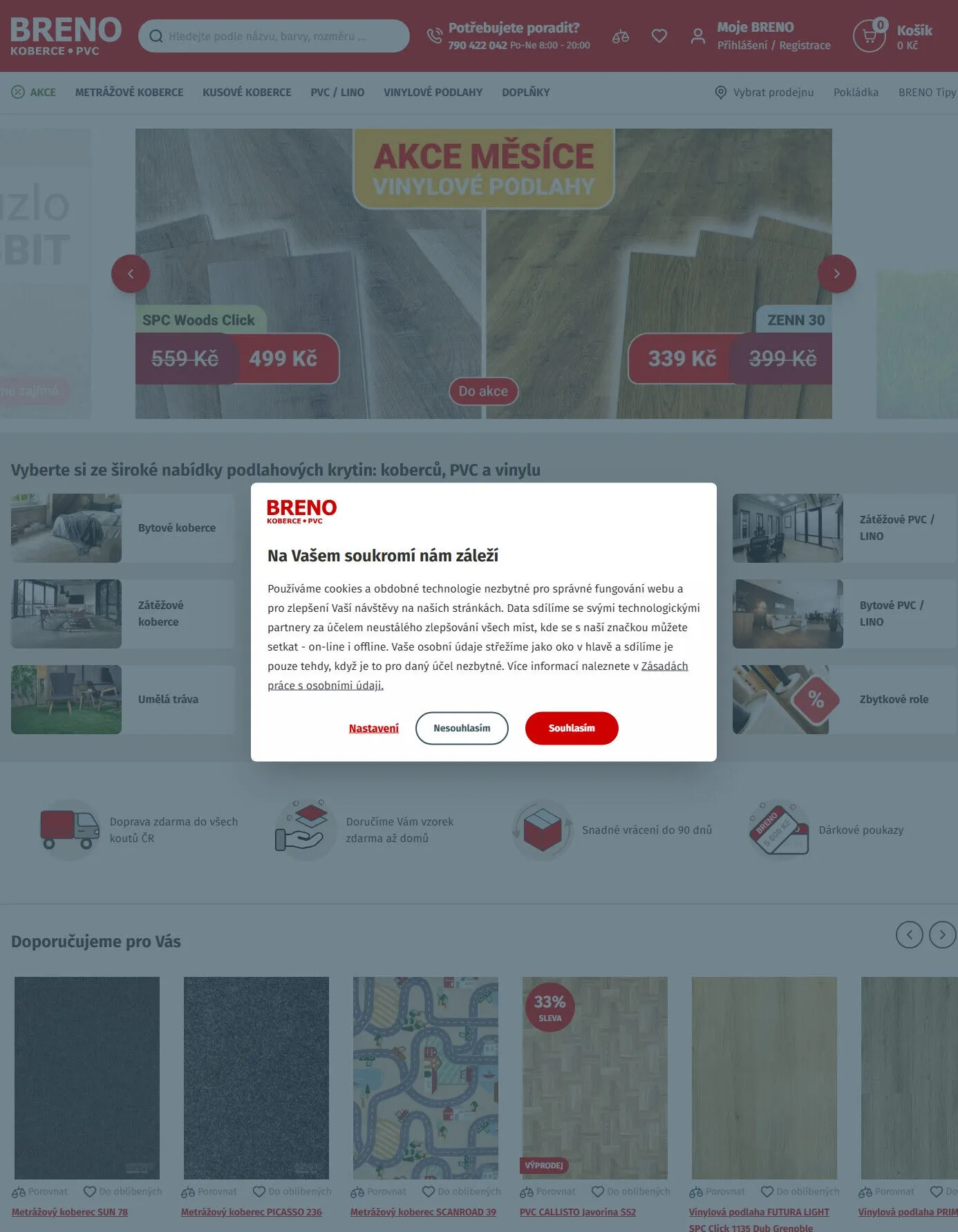 V letáku obchodu Breno najdete širokou nabídku koberců a podlahových krytin. Nabízíme metrážové koberce, kusové koberce, zátěžové PVC a umělou trávu. V rámci akce měsíce si můžete vybrat z různých produktů za zvýhodněné ceny, například metrážový koberec Scanroad nebo Picasso. Dále nabízíme vinylové podlahy a doplňky, které skvěle doplní váš interiér. Pokud potřebujete poradit, neváhejte nás kontaktovat na telefonním čísle 790 422 042. Doprava zdarma do všech koutů ČR a možnost snadného vrácení do 90 dnů. Navštivte nás a objevte naše tipy a akce!