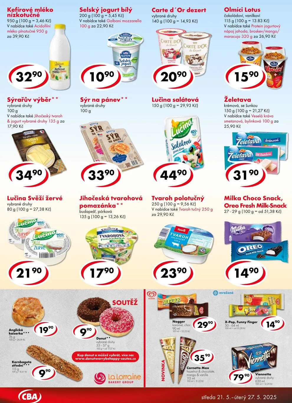V letáku obchodu CBA najdete širokou nabídku kvalitních mléčných výrobků. Nabízíme kefírové mléko nízkotučné 950 g za 32,90 Kč a také plnotučné acidofilní mléko za 39,90 Kč. Pro milovníky tvarohu máme jihočeský tvaroh a sýrařův výběr.