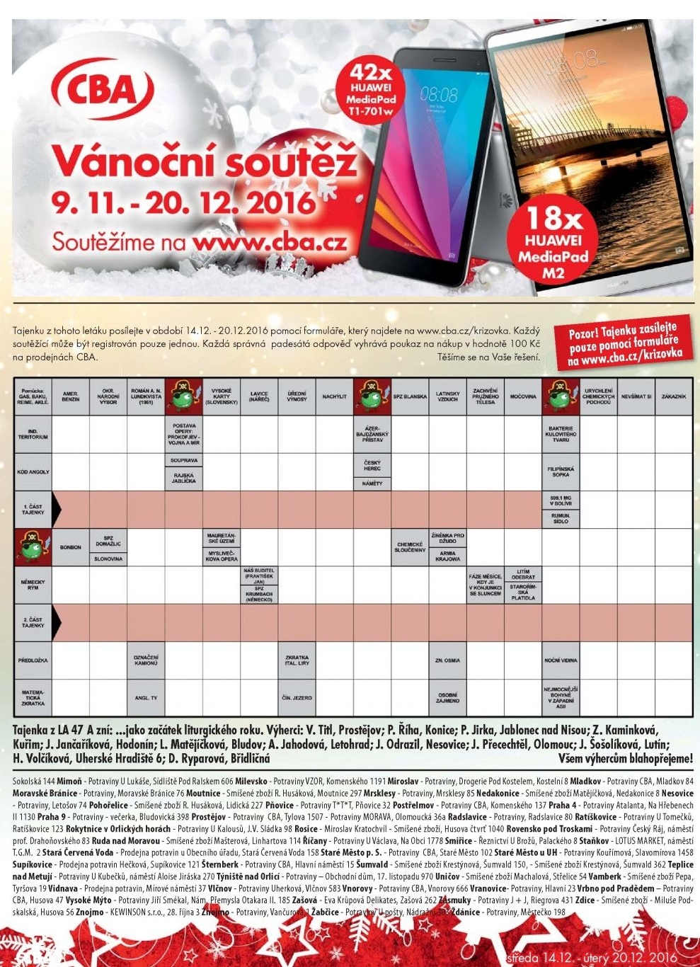 tajenku z tohoto letáku posleite v období 14.12. - 20.12.2016 pomocí formuláře, který najdete na w.w.cba.cz/krizovka. každý