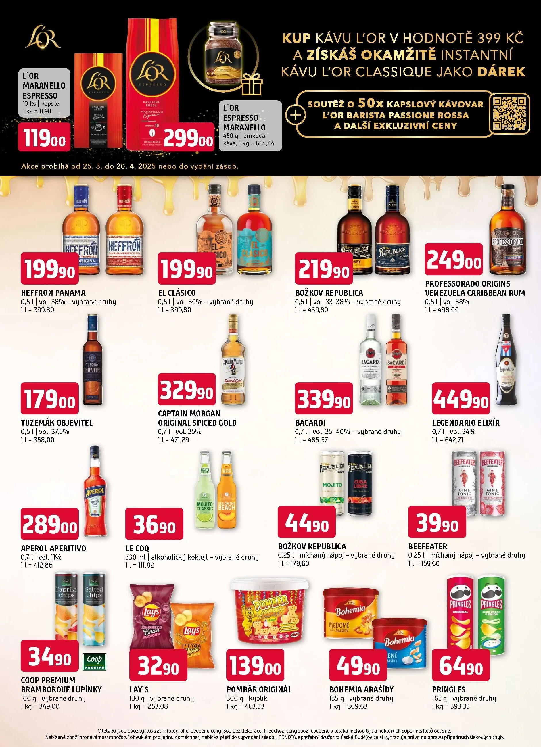 Mezi alkoholickými nápoji najdete Aperol Aperitivo, Captain Morgan Original Spiced Gold a Božkov Republica.
