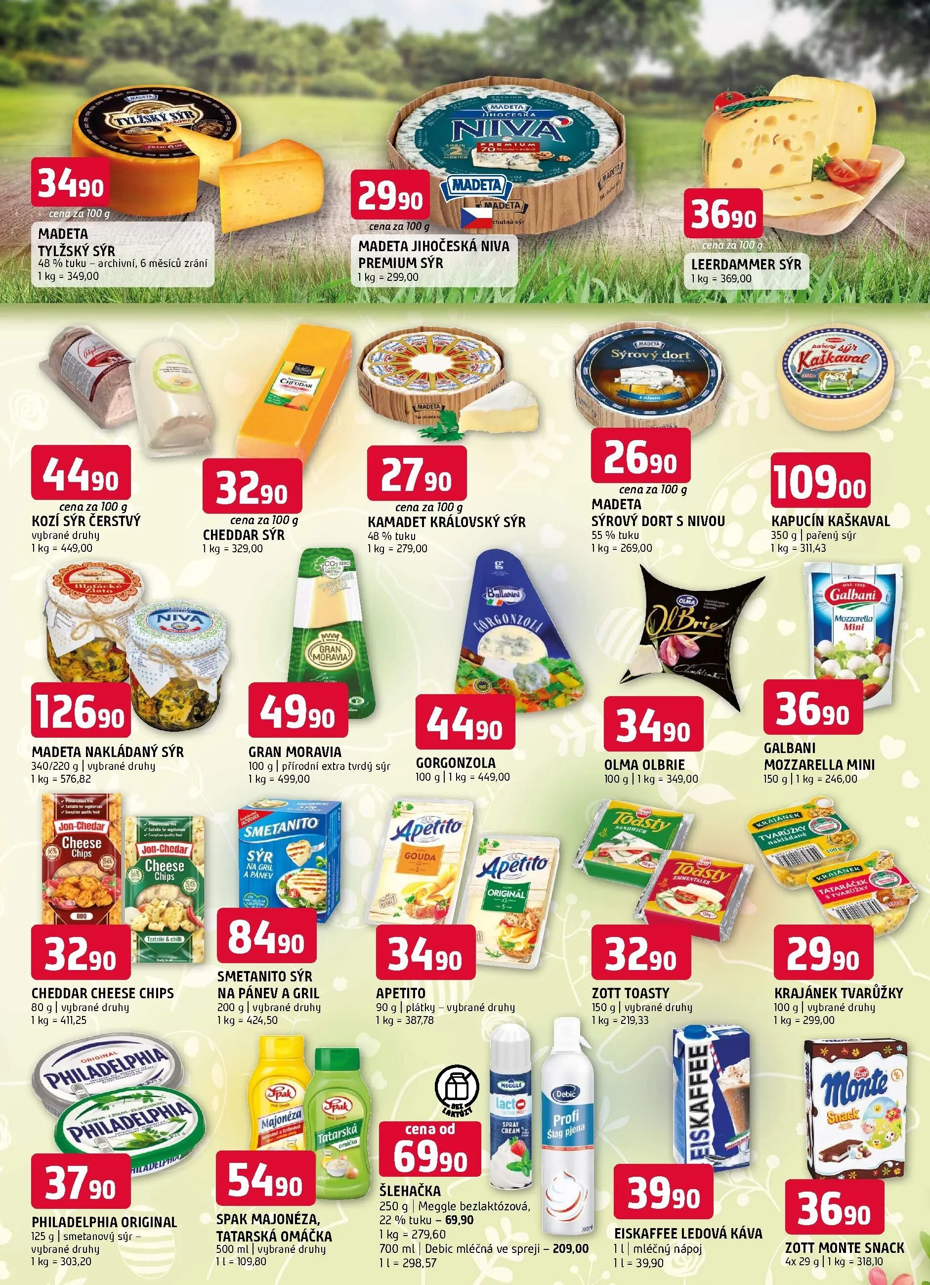 - Madeta Tylžský sýr (700 g) - archivní sýr se 48 % tuku, cena 349,00 Kč/kg.