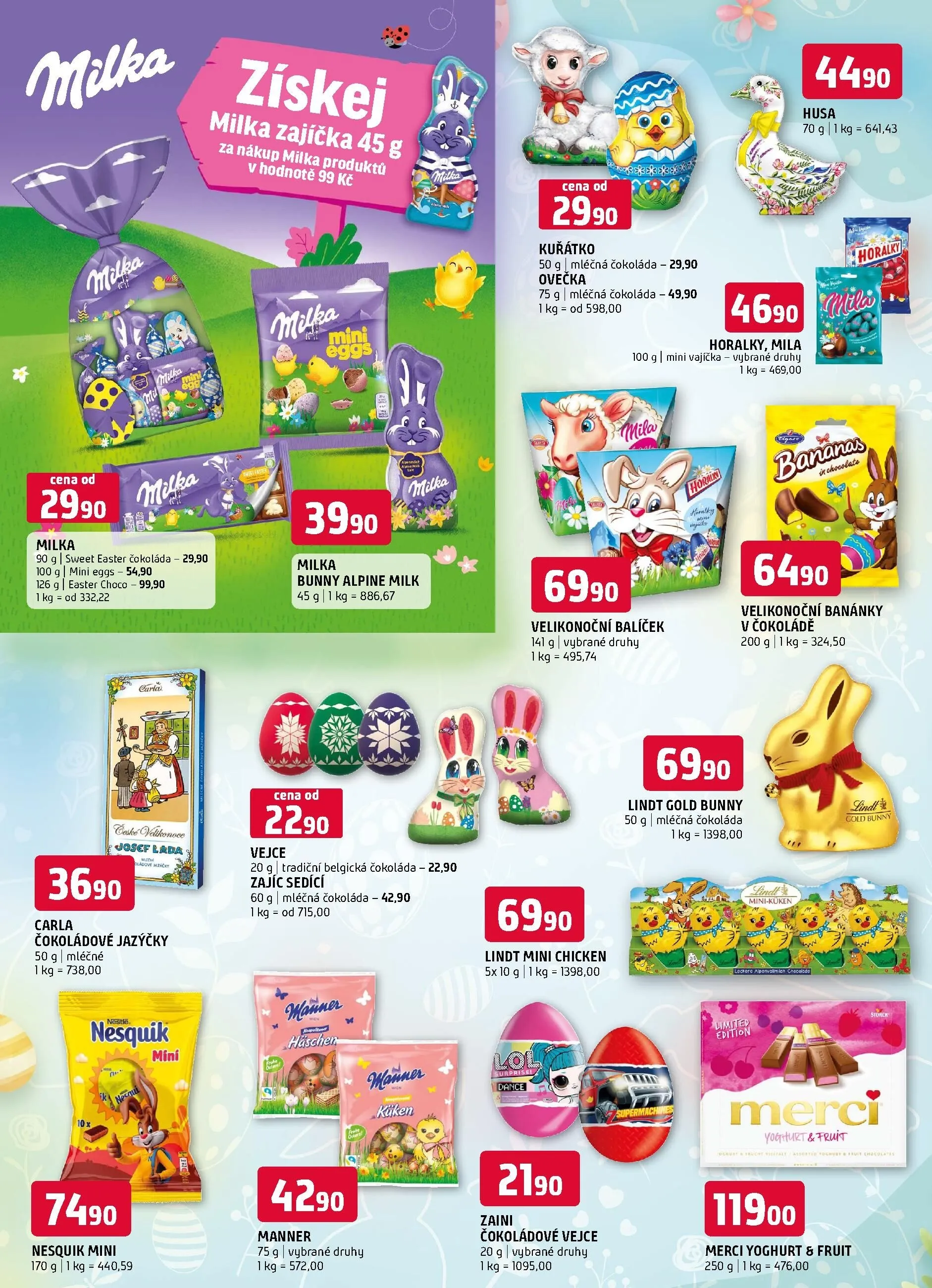 Pro děti jsou připraveny oblíbené produkty jako Nesquik mini a čokoládová vejce Zaini.
