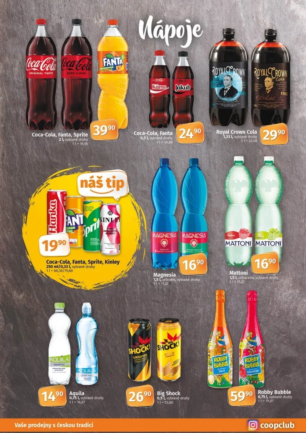 V letáku obchodu COOP najdete širokou nabídku oblíbených nápojů.