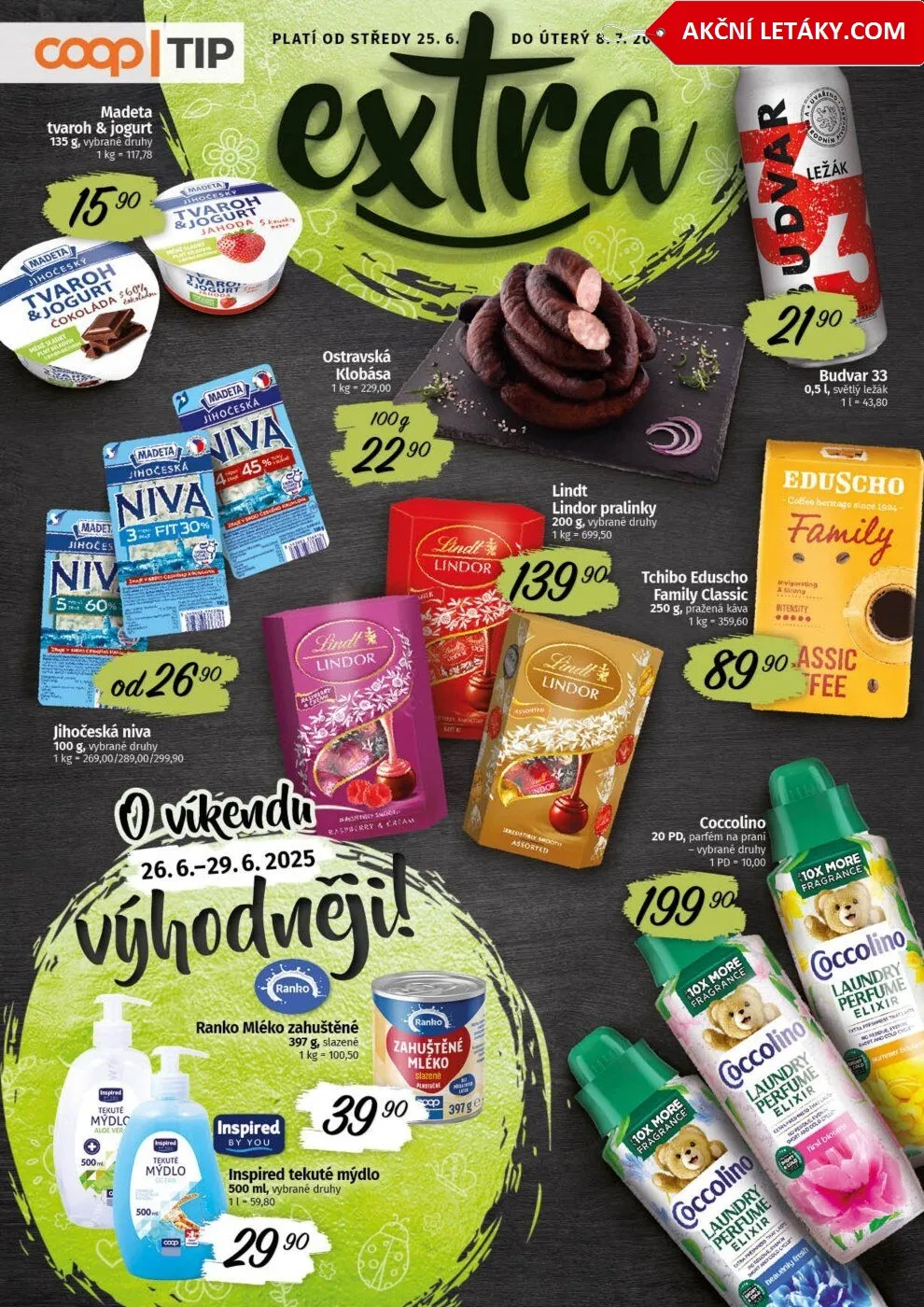 Dalšími zajímavými produkty jsou zahuštěné mléko Ranko a tekuté mýdlo Inspired, které je k dispozici v 500 ml balení. Všechny tyto produkty jsou k dostání od 25. června do 8. července 2025. Neváhejte a navštivte COOP pro skvělé nabídky!