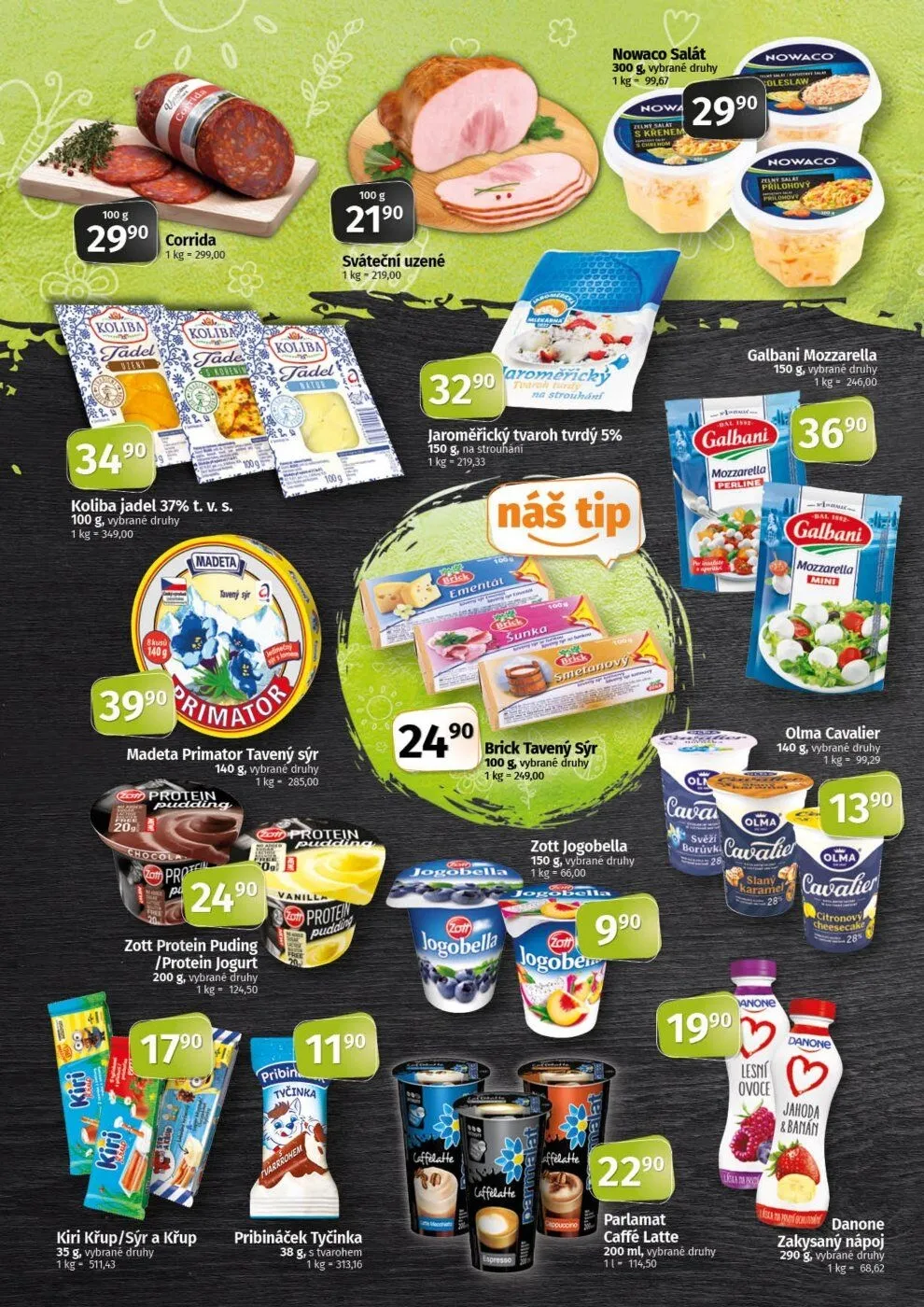 V letáku obchodu COOP najdete širokou nabídku kvalitních produktů. Mezi nimi se objevují vybrané druhy salátů Nowaco za 990 Kč za 1 kg. Dále si můžete vybrat z různých druhů sýrů, jako je Madeta Primátor taverý sýr za 285 Kč za 1 kg nebo Koliba jadel s 37% t.v.s. za 349 Kč za 1 kg.