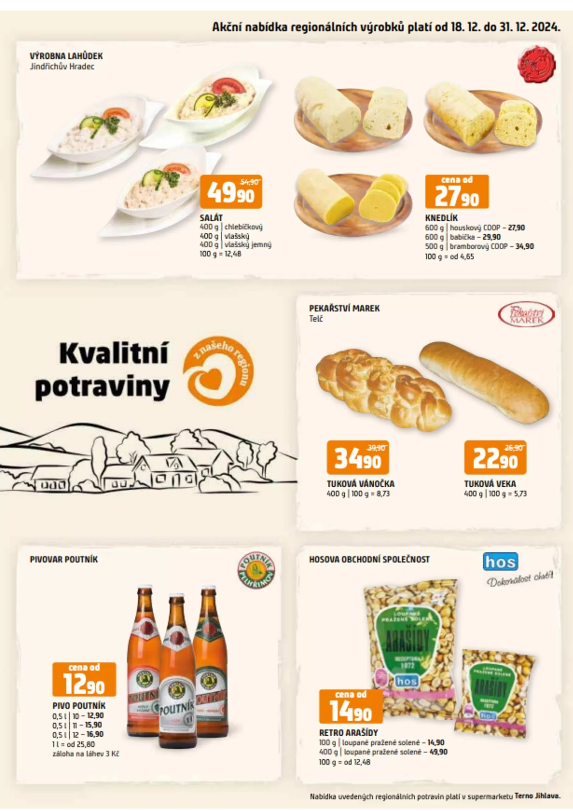 V letáku obchodu COOP najdete akční nabídku regionálních výrobků, která platí od 18.12. do 31.12.2024. Nabízíme kvalitní potraviny z různých výrobních míst.