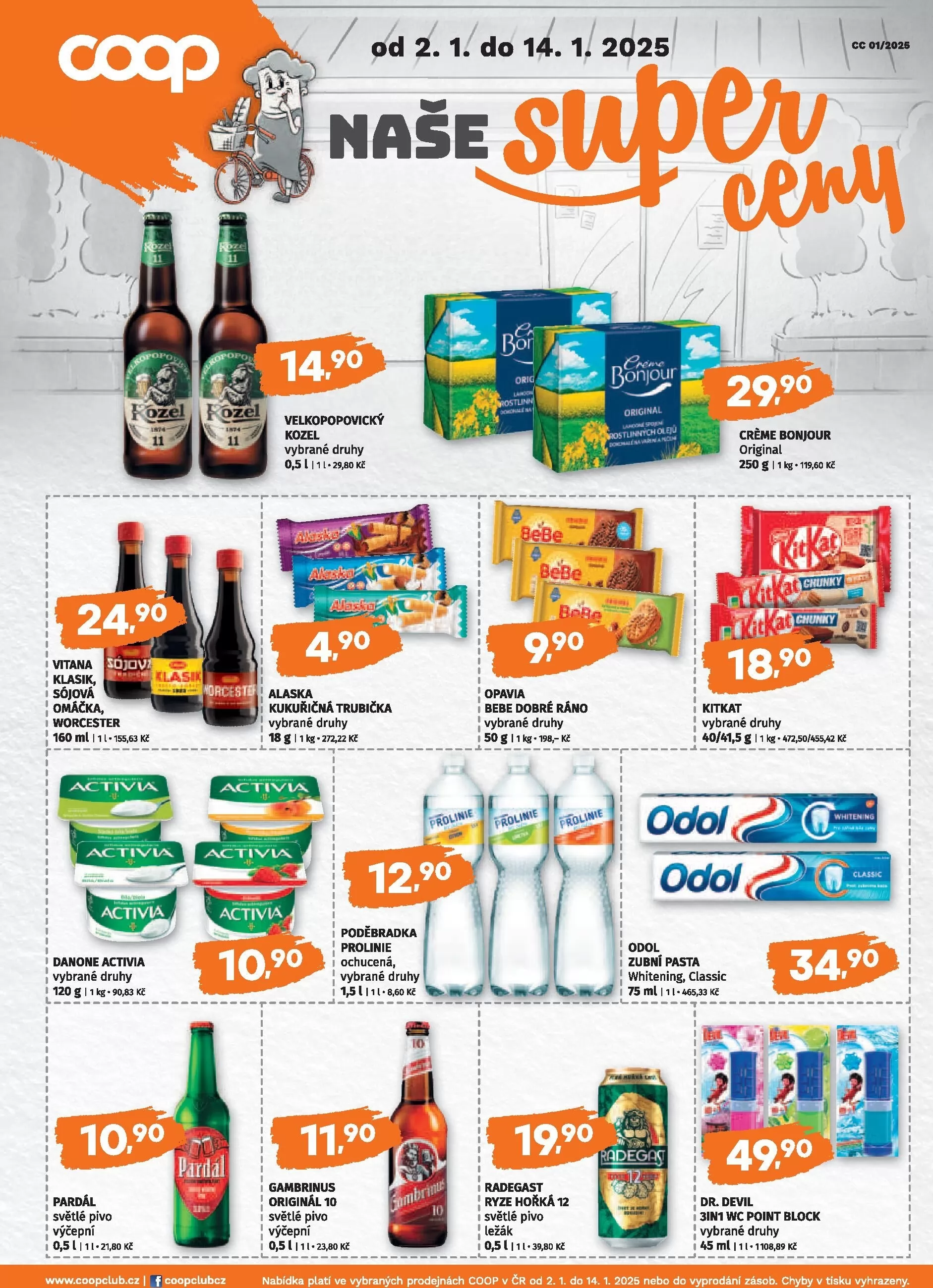 Nabídka platí ve vybraných prodejnách COOP v ČR od 2. 1. do 14. 1. 2025 nebo do vyprodání zásob. Nezapomeňte, že chyby v tisku vyhrazeny!