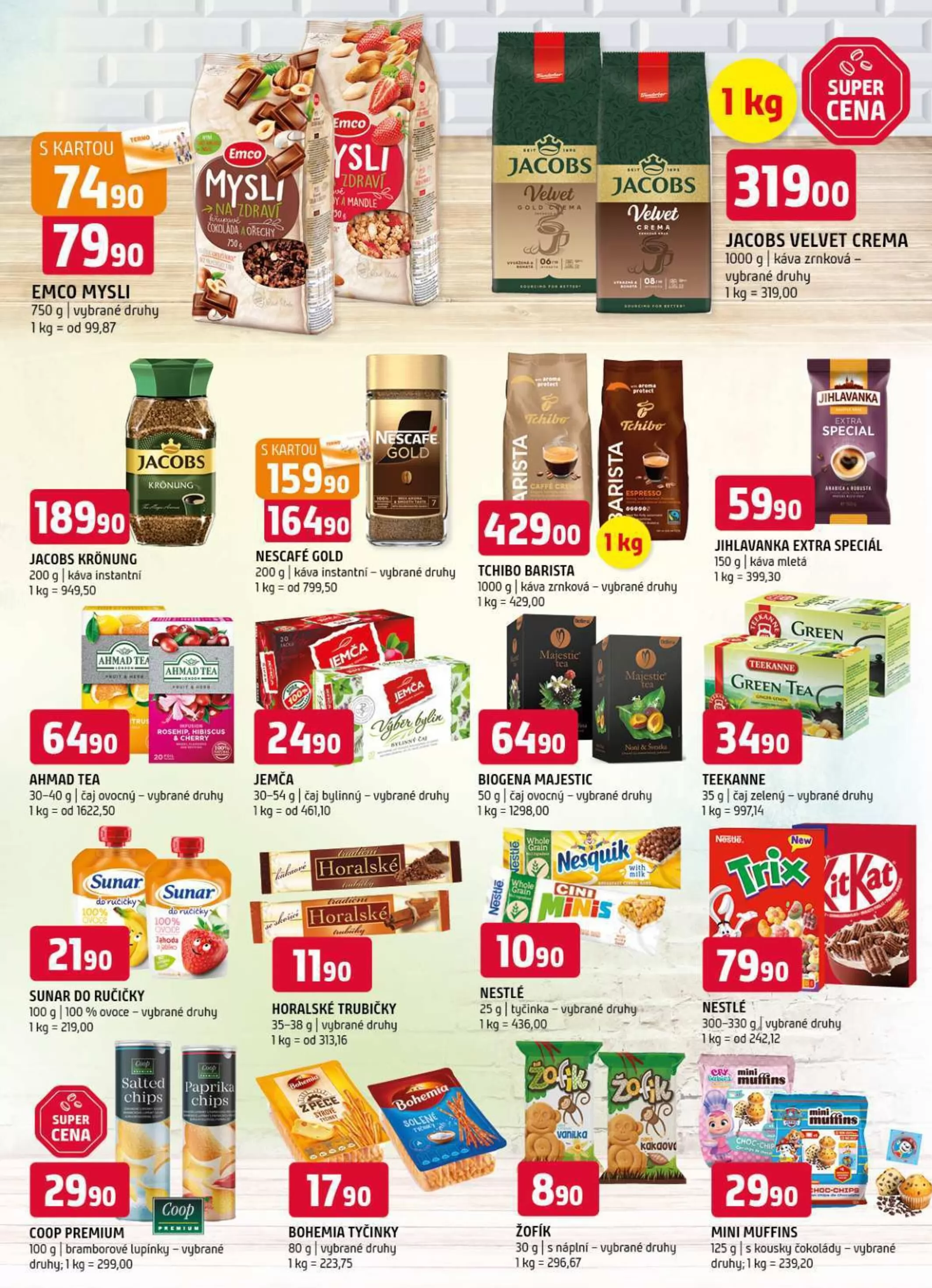 V letáku obchodu COOP najdete širokou nabídku kvalitních produktů. Mezi nimi se objevují oblíbené značky kávy jako Jacobs Krönung a Nescafé Gold, které jsou k dispozici v různých variantách. Pro milovníky čajů jsou připraveny bylinkové a ovocné čaje od značky Ahmad Tea a Jemča.