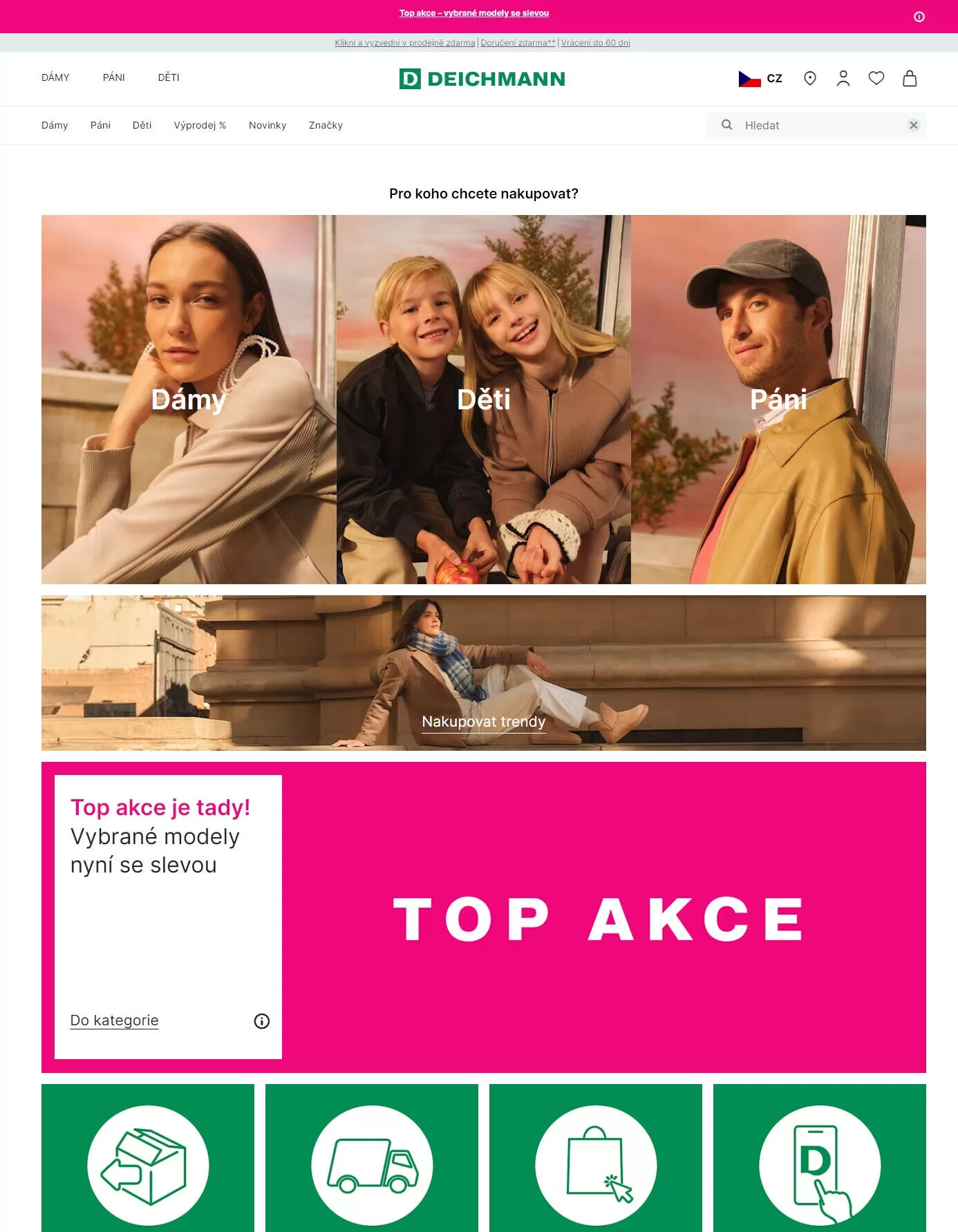 V letáku obchodu DEICHMANN najdete širokou nabídku obuvi pro dámy, pány a děti. Aktuální výprodej nabízí skvělé slevy na vybrané modely. Nezapomeňte se podívat na novinky a top akce, které jsou nyní k dispozici. Služba "klikni a vyzvedni" vám umožní pohodlně si objednat zboží online a vyzvednout ho zdarma v prodejně. Doručení je také zdarma a vrátit zboží můžete do 60 dnů. Prozkoumejte různé značky a najděte ideální obuv pro každého člena rodiny!
