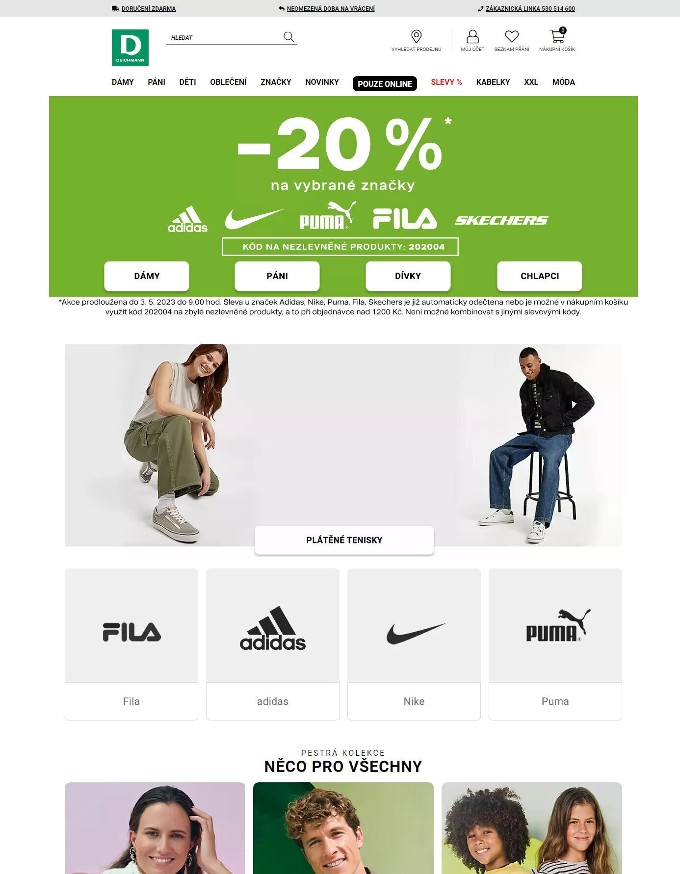 *akce prodloužena do 3. 5. 2023 do 9.00 hod. sleva u značek adidas, nike, puma, fila, skechers je již automaticky odečtena nebo je možné v nákupním kosiku