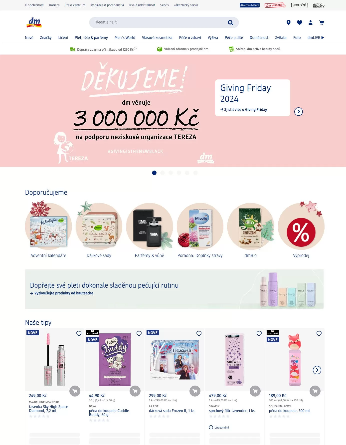 Nezapomeňte také na naše adventní kalendáře a speciální nabídky, jako je doprava zdarma při nákupu nad 1290 Kč. V rámci akce Giving Friday dm věnuje 3 000 000 Kč na podporu neziskové organizace Tereza.