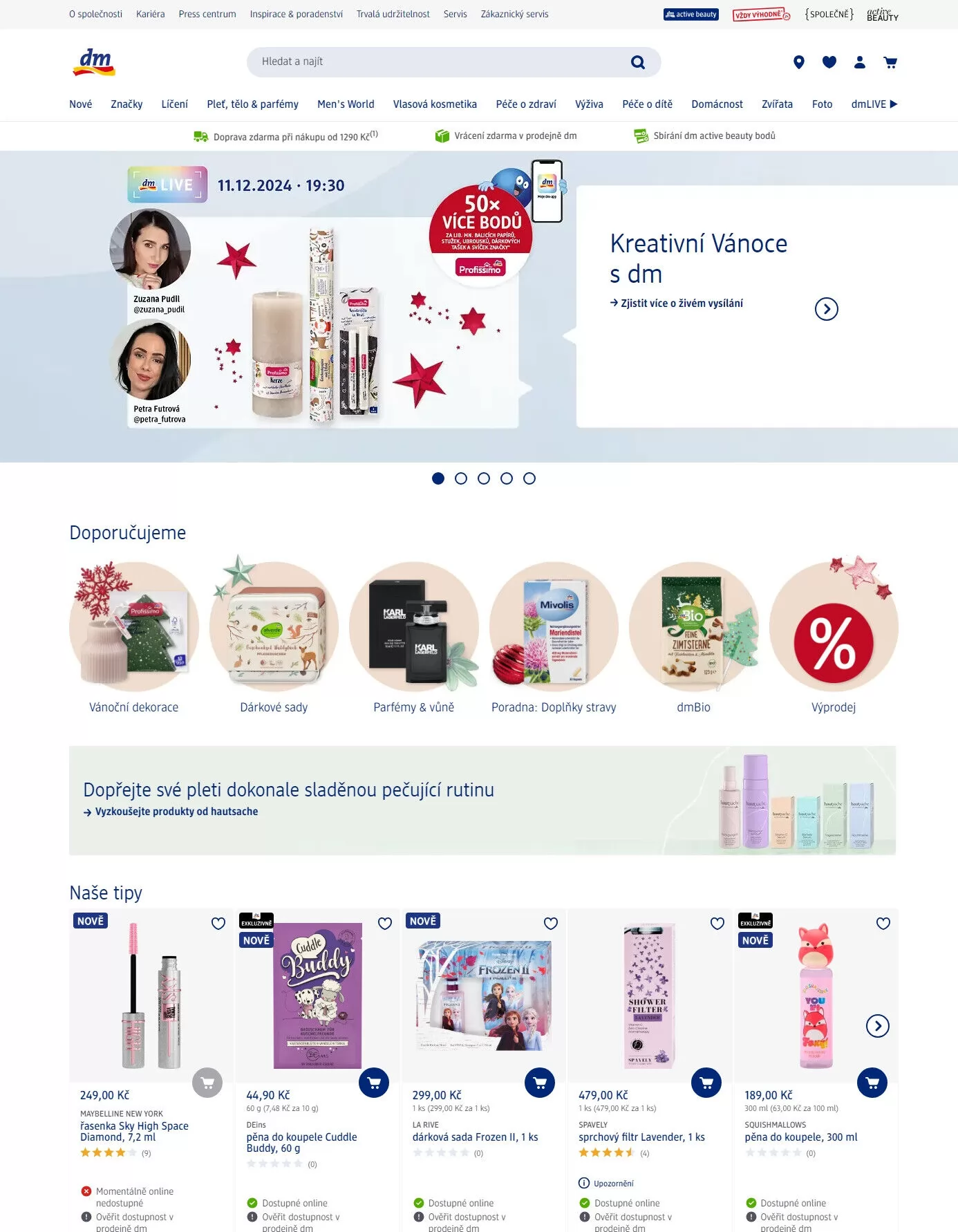 Využijte akci dopravy zdarma při nákupu nad 1290 Kč a sbírejte body v programu dm active beauty.