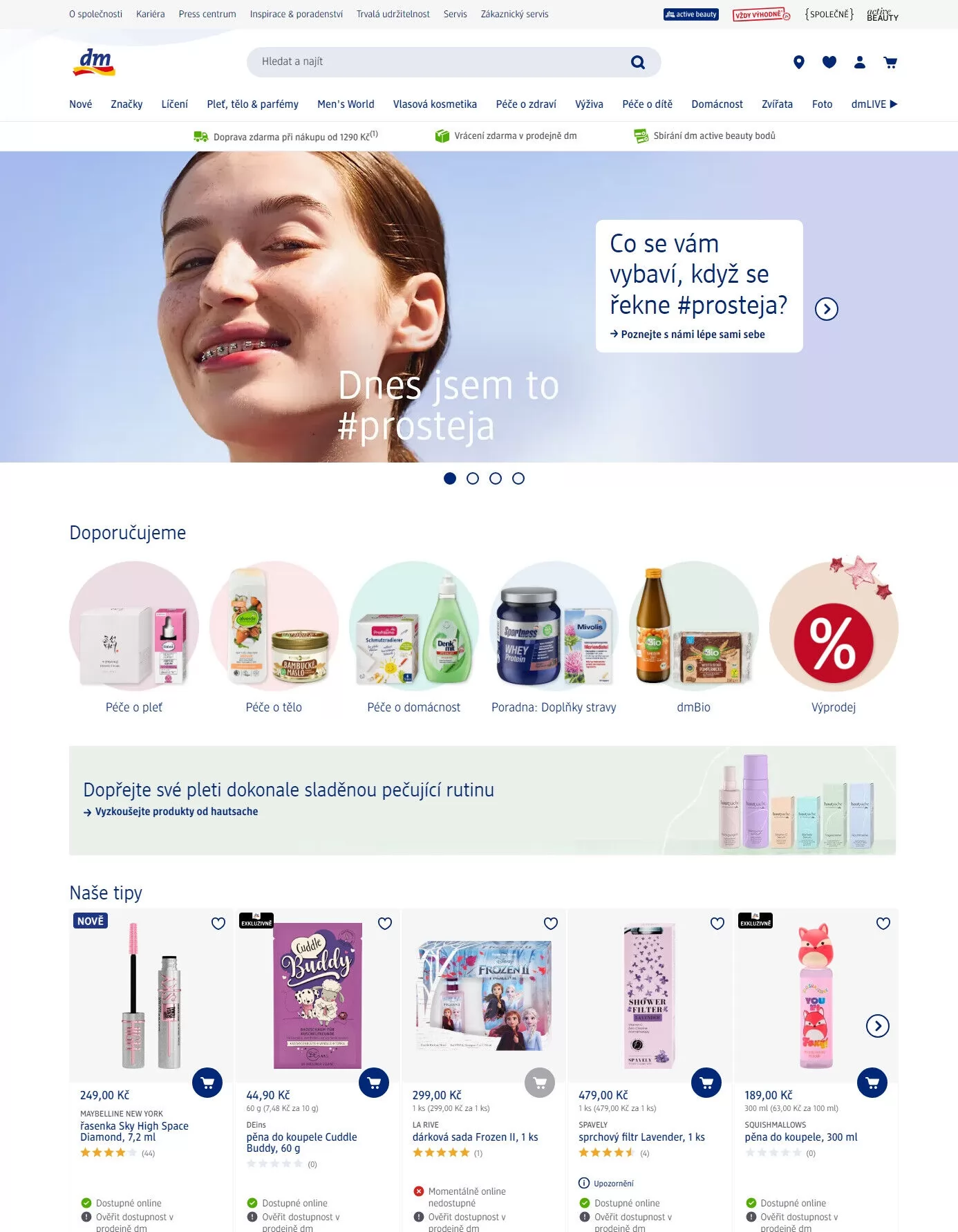 V letáku obchodu dm drogerie najdete širokou nabídku produktů pro péči o pleť, tělo a vlasy. Doporučujeme vyzkoušet řasenku Sky High Space od Maybelline New York, která je nyní dostupná online. Pro relaxaci si pořiďte pěnu do koupele s vůní levandule nebo zábavnou pěnu do koupele Squishmallows. Nezapomeňte také na dárkovou sadu Frozen od La Rive, která je momentálně nedostupná, ale můžete ověřit její dostupnost. Využijte dopravu zdarma při nákupu nad 1290 Kč a sbírejte dm active beauty body. Objevte s námi dokonalou péči o sebe a svůj domov!
