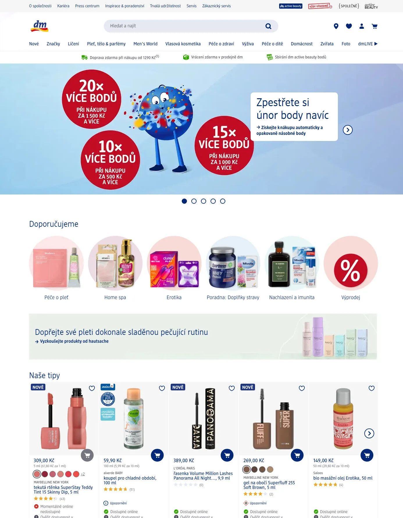 V letáku obchodu dm drogerie najdete širokou nabídku produktů pro péči o pleť, tělo a vlasy. Dopřejte si kvalitní kosmetiku, jako je tekutá rtěnka Superstay od Maybelline New York nebo řasenka Volume Million Lashes od L'Oréal Paris. Pro chladné období doporučujeme koupelový olej Alverde Baby, který vás zahřeje a potěší. Nezapomeňte také na gel na obočí Superfluff, který dodá vašemu vzhledu dokonalý finiš. Využijte akce na sbírání bodů dm active beauty a získejte více bodů při nákupu nad 500 Kč. Objednávejte online a využijte dopravu zdarma při nákupu nad 1290 Kč. Všechny produkty jsou dostupné online, takže si můžete snadno vybrat to pravé pro vás.