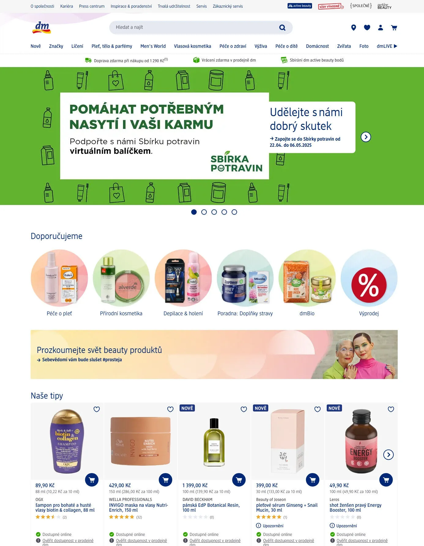 V letáku obchodu dm drogerie najdete širokou nabídku produktů pro péči o tělo, vlasy a zdraví. Doporučujeme vyzkoušet šampon pro bohaté a husté vlasy s biotinem a kolagenem za 89,90 Kč, nebo nutriční masku na vlasy od Wella Professionals za 429,00 Kč. Pro pány je k dispozici pánská parfémovaná voda od Davida Beckhama za 1 399,00 Kč. Nezapomeňte také na pleťové sérum s ginsengem a hlemýždí mucinou od Beauty of Joseon za 399,00 Kč. Pro povzbuzení doporučujeme shot ženšenu pravého za 49,90 Kč. Všechny produkty jsou dostupné online, s možností ověření dostupnosti v prodejnách. Nezapomeňte se zapojit do sbírky potravin a udělat dobrý skutek!
