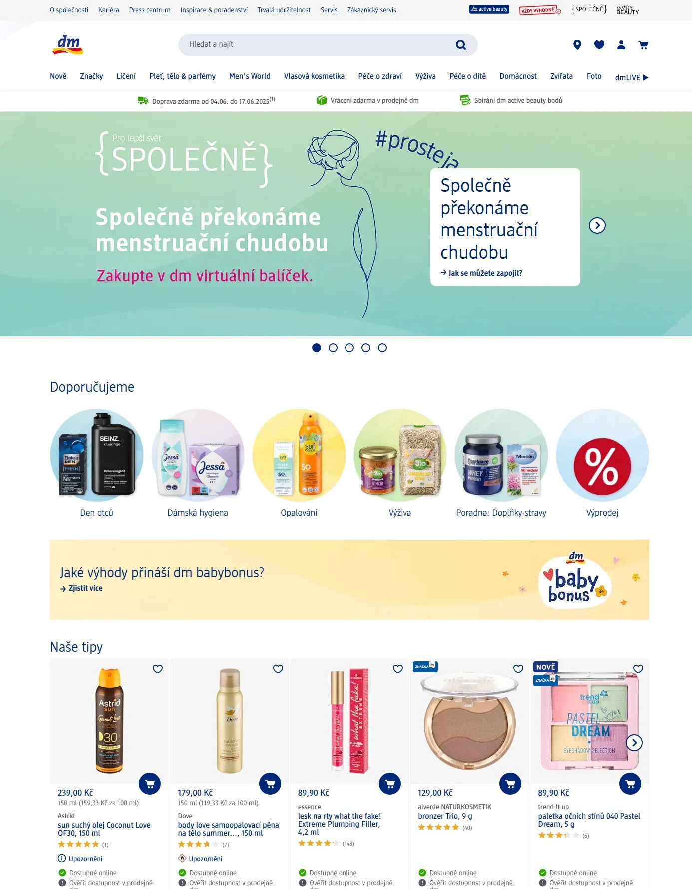 V letáku obchodu dm drogerie najdete širokou nabídku produktů pro každodenní péči. Mezi doporučované položky patří lesk na rty essence "what the fake!" s efektem plumping za 89,90 Kč, nebo suchý olej Astrid "coconut love" s SPF 30 za 239,00 Kč. Pro milovníky samoopalování je k dispozici Dove "body love" samoopalovací pěna za 179,00 Kč. Nezapomeňte také na paletku očních stínů trend it up "040 pastel dream" za 89,90 Kč. Všechny produkty jsou dostupné online, s možností ověření dostupnosti v prodejnách. Navíc, při nákupu můžete sbírat dm active beauty body a využít dopravu zdarma od 4. do 17. června 2025.