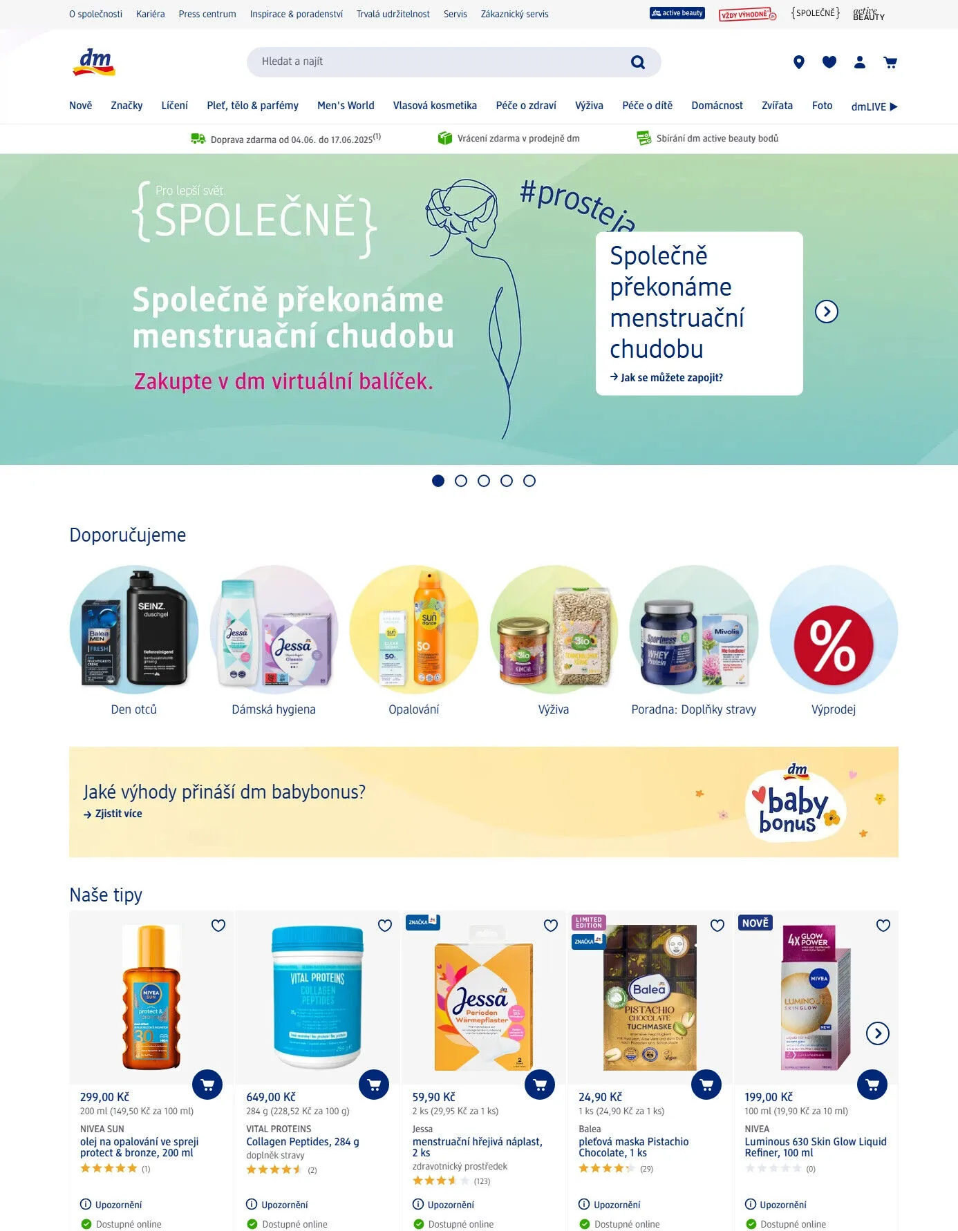 V rámci akce můžete využít dopravu zdarma od 4. do 17. června 2025 a vrácení zboží zdarma v prodejně dm. Připojte se k programu dm active beauty a sbírejte body za své nákupy. Objevte také výhody dm babybonus a získejte více informací o péči o dítě.